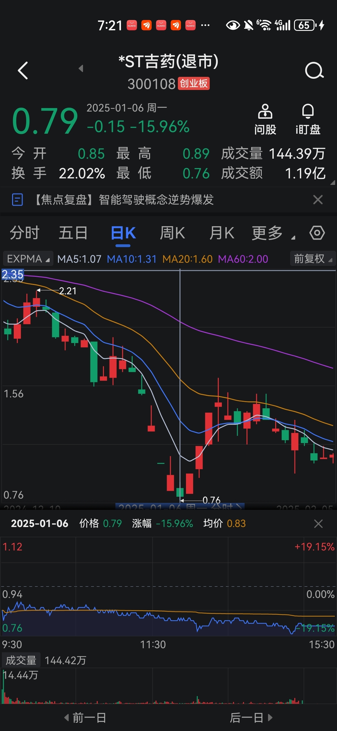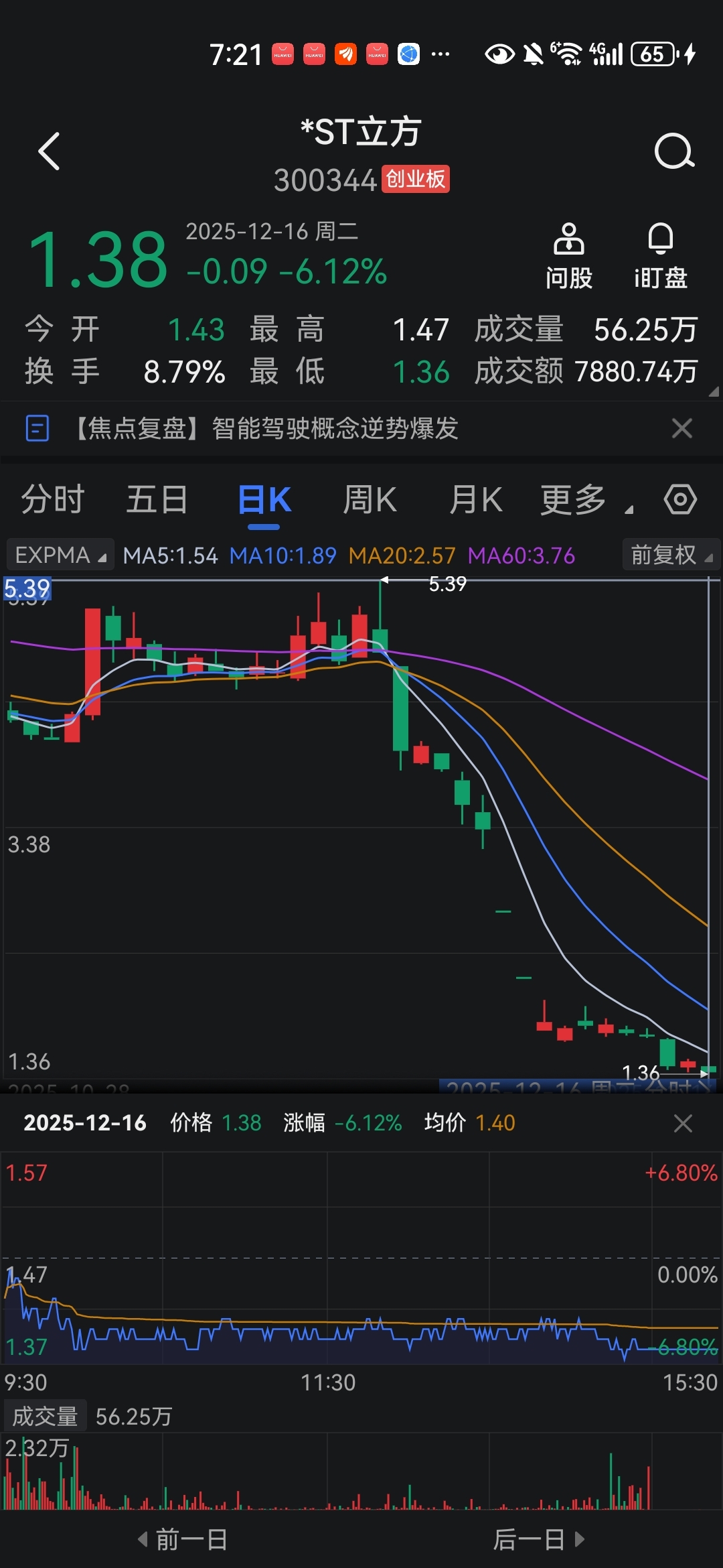 今天立方创新低1.36但是收盘不是最低点,有点像吉药那天也是创新低0.76但是收