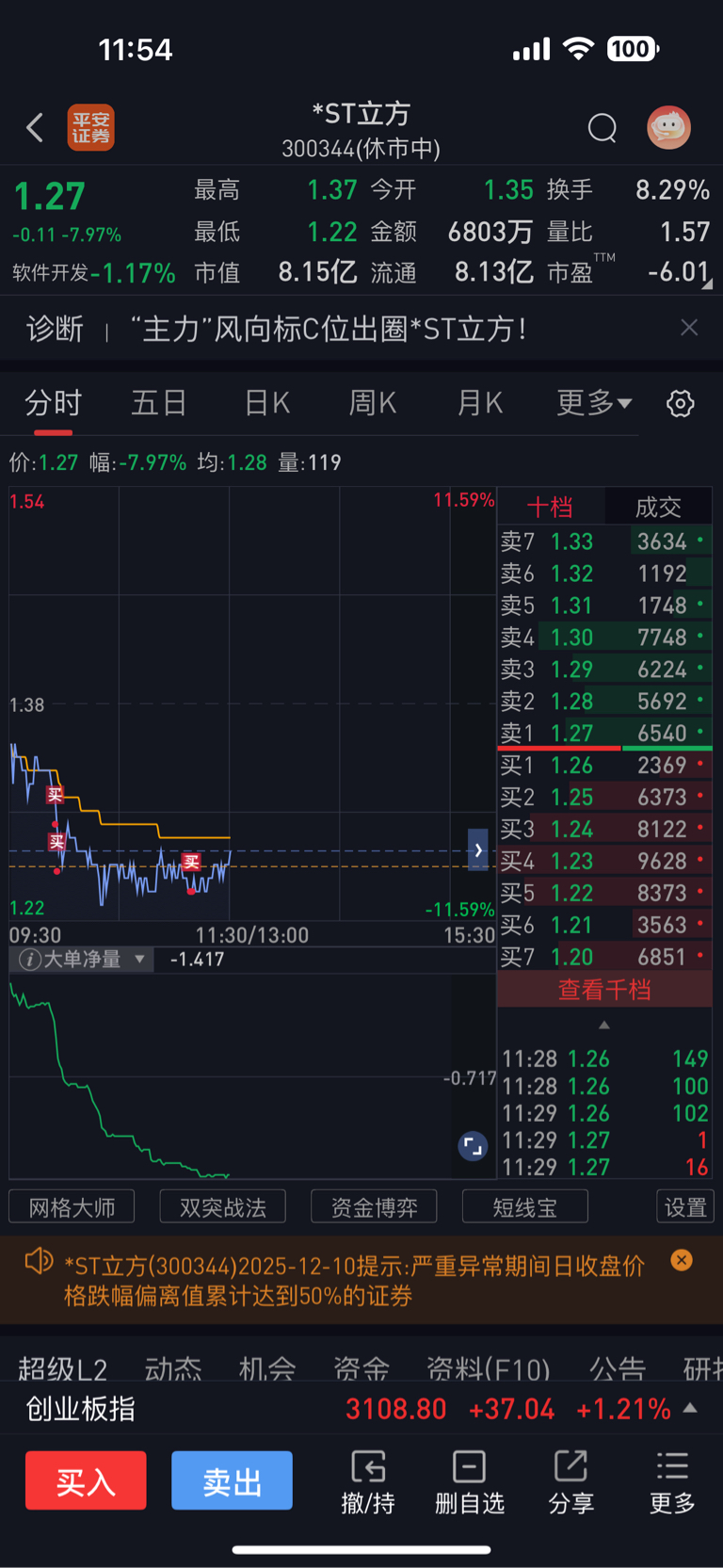 $*ST立方(SZ300344)$ 都说了退市股又如何,你认知不到位,你差的可不是一星半点的实力,本人每日都发获利和购买图,专靠嘴说涨说跌,你以为你是谁。