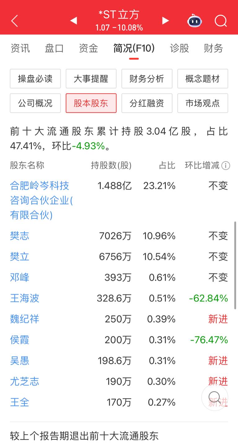 $*ST立方(SZ300344)$ 十大流通股东,新进的魏总,侯总,尤总,吴总,王总,你们还好吗,还扛的住吗,这下芭比Q了