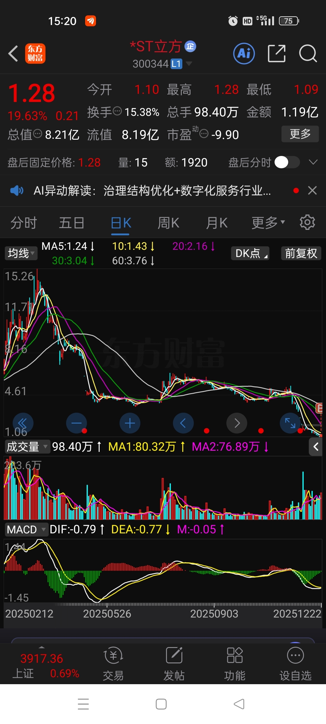 $*ST立方(SZ300344)$ 从15块快速跌下来,跌到1块钱你也不敢买?就算退市也剩个5毛钱吧,跌了15倍,就算反弹也有3个板吧,我天天盯着他