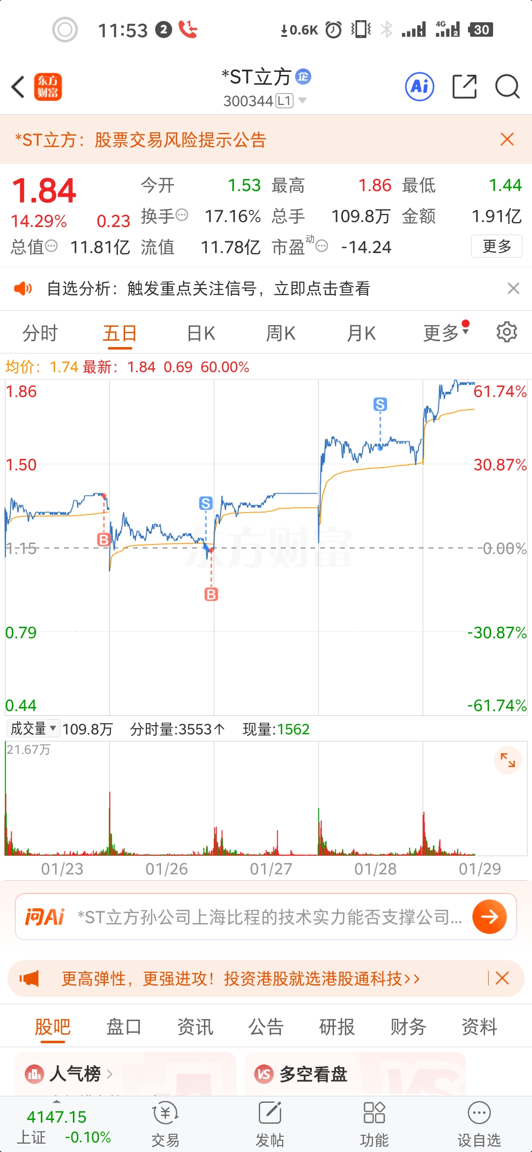 $*ST立方(SZ300344)$ 小赚跑了,留下了没格局的泪水,该不会公司真的逃过退市命运吧。公司的狡辩大会什么时间开?考虑要不要在介入玩一下