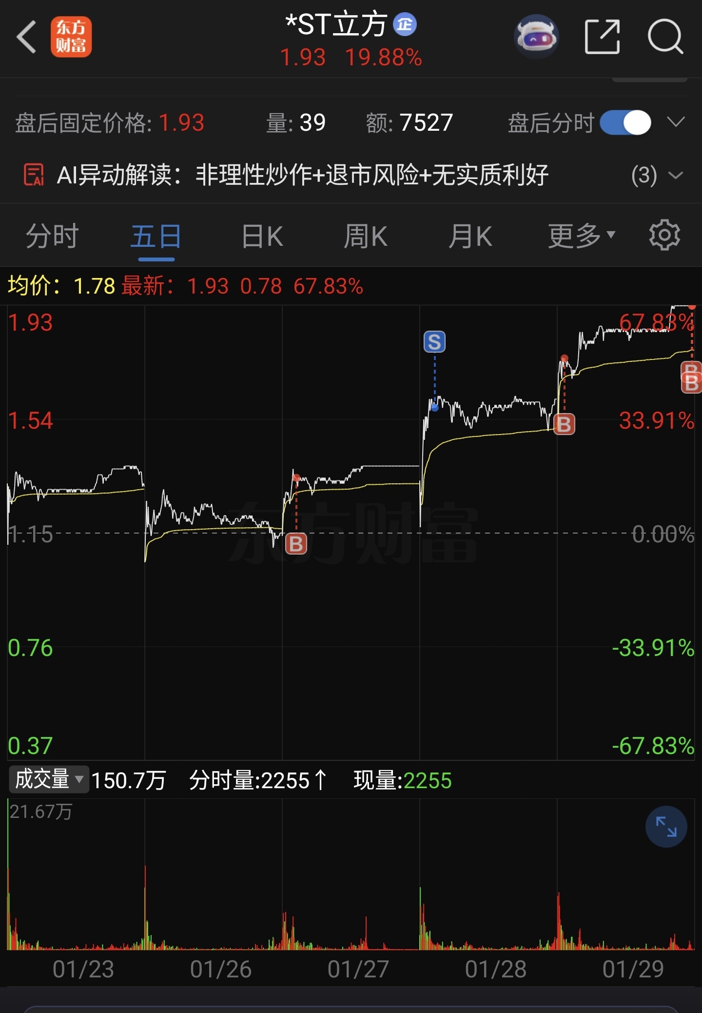 $*ST立方(SZ300344)$ 三分之二仓,瑟瑟发抖