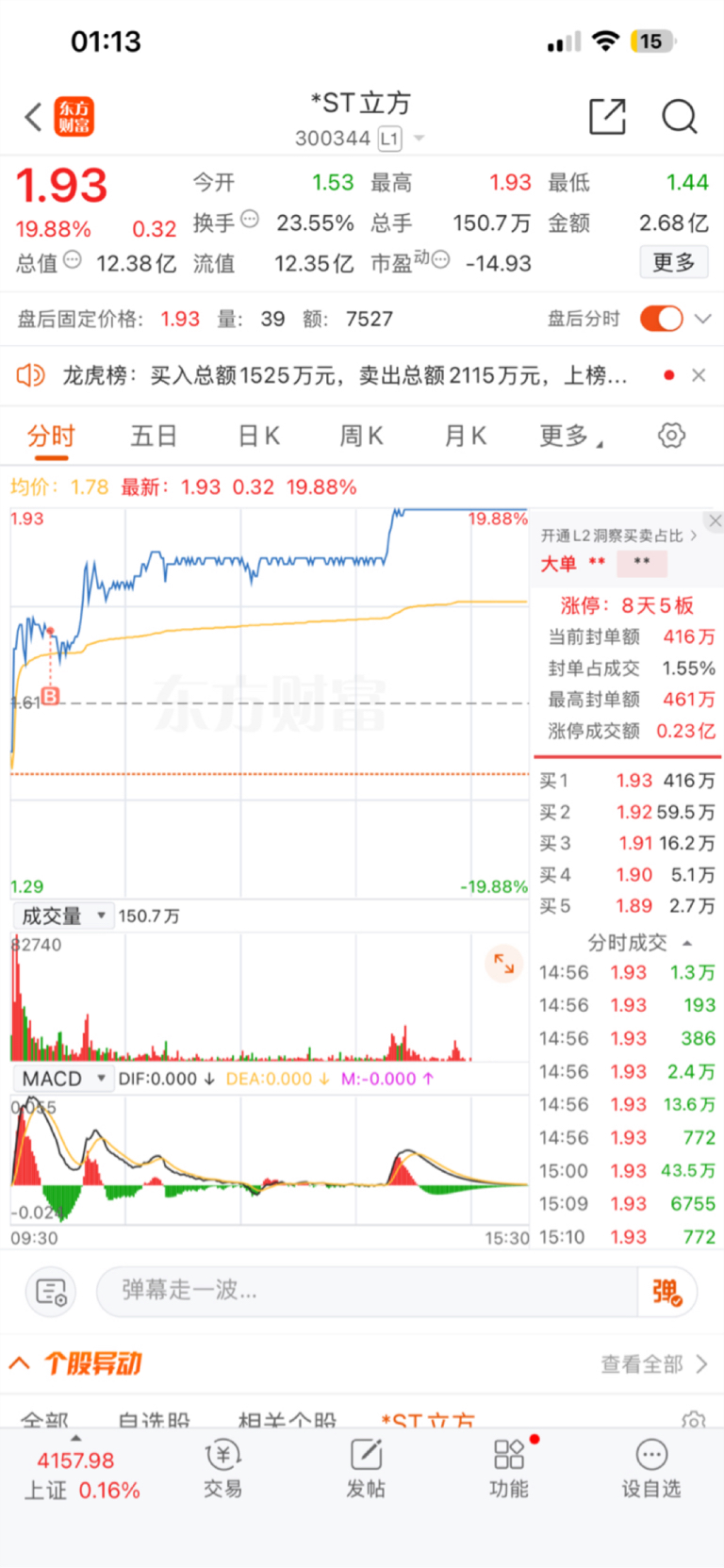 $*ST立方(SZ300344)$ 谁懂啊, 完全睡不着