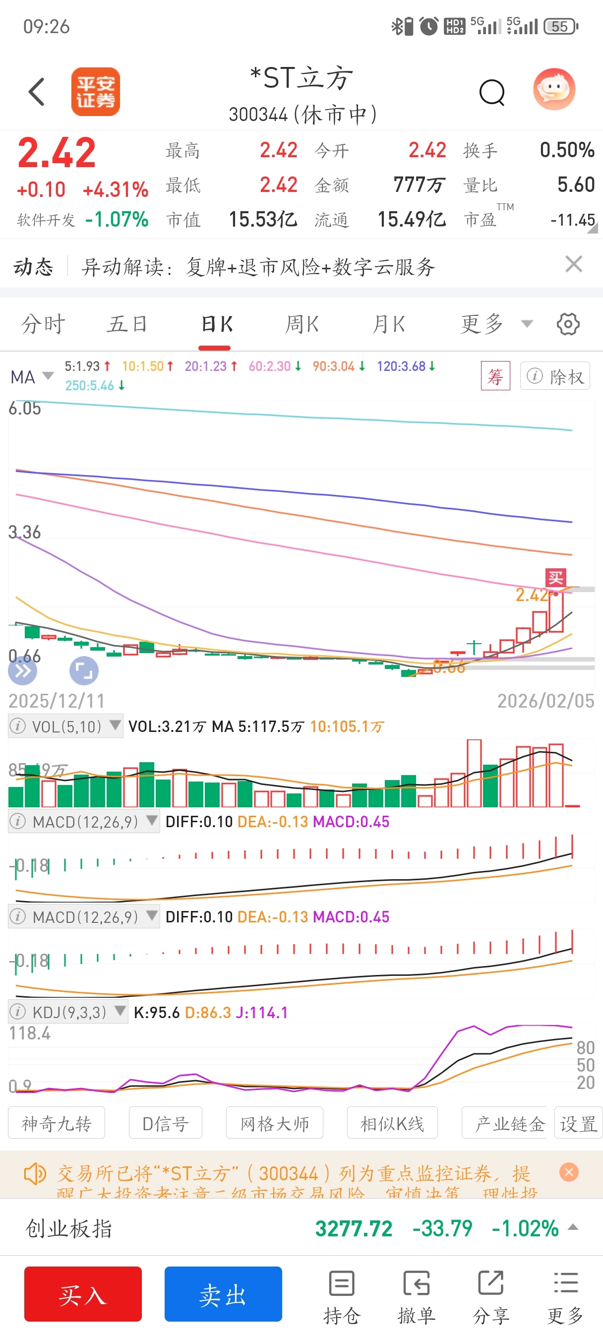 $*ST立方(SZ300344)$ $*ST花王(SH603007)$ $ST明诚(SH600136)$ 有什么我不知道的利好吗,昨天买了点,以为今天吃面的,没想到还有肉,没底仓的不建议进,个人看法仅供参考