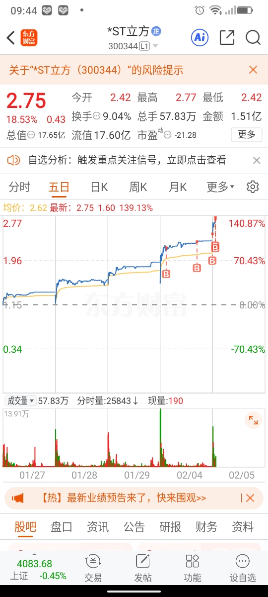 $*ST立方(SZ300344)$  外面一片绿,只能玩这个垃及了~