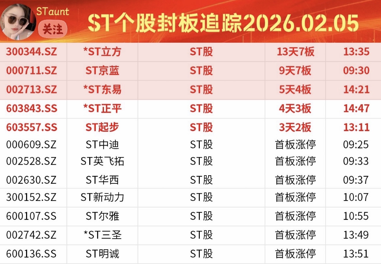 ST个股封板追踪A