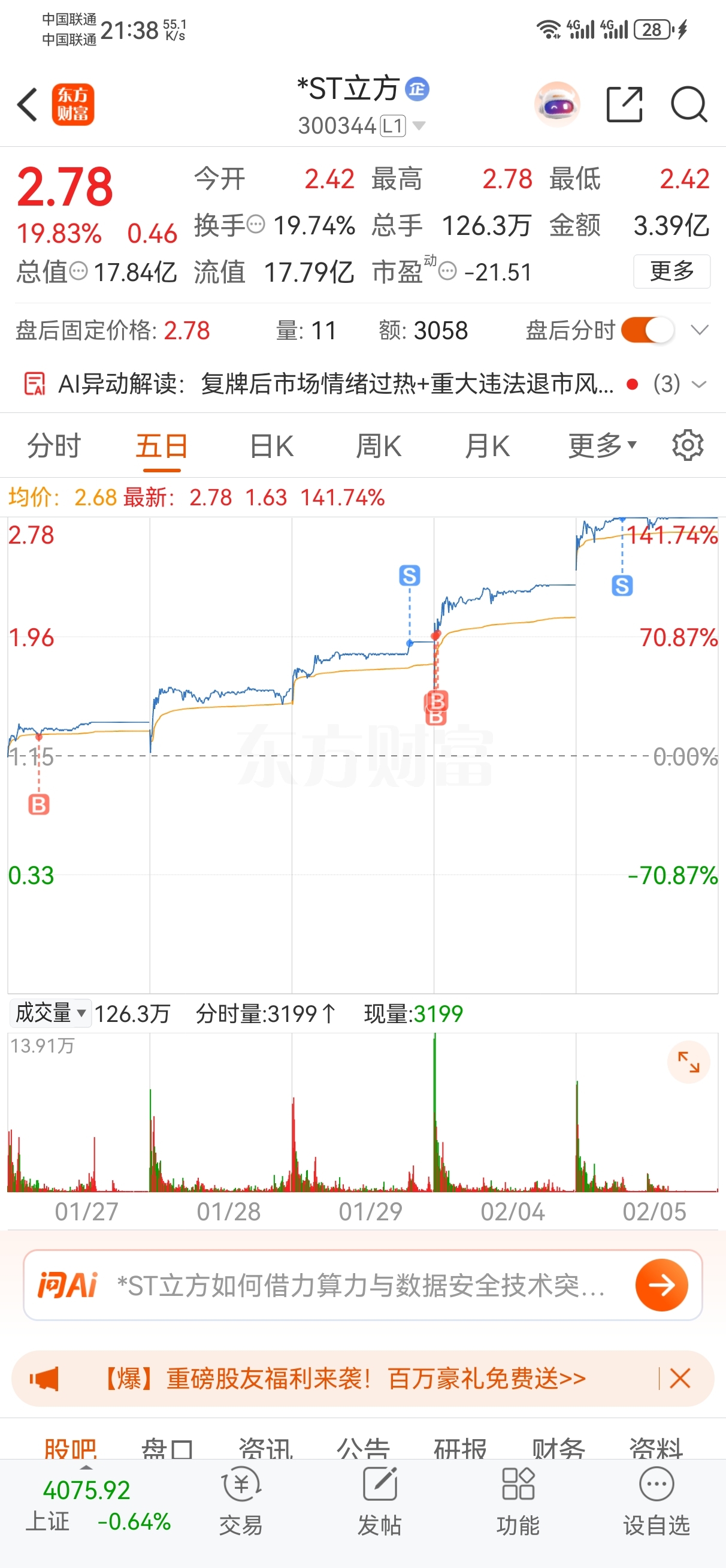 $*ST立方(SZ300344)$ 你敢信?两次停牌我都跑了