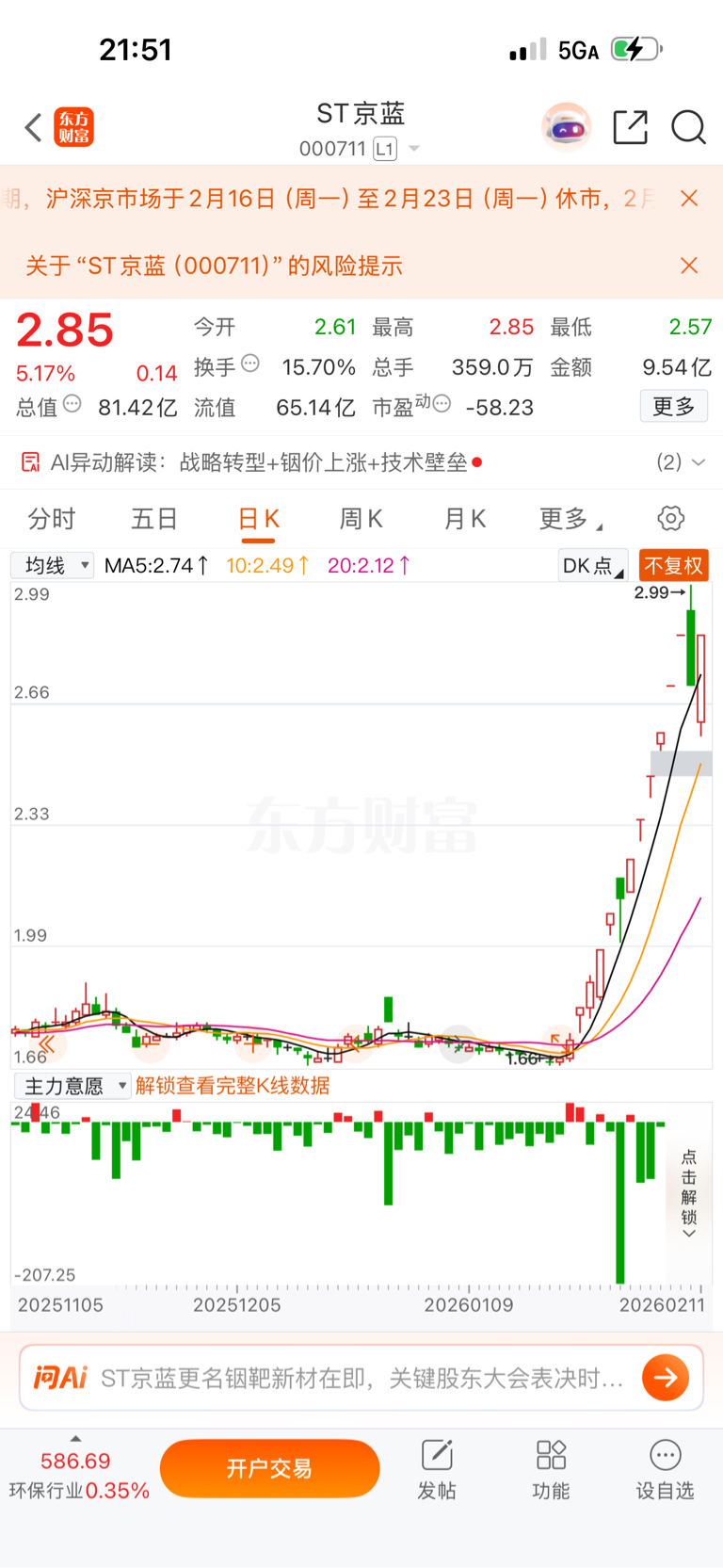 $*ST立方(SZ300344)$ 立方百分之百要退市,京蓝明天股东大会改名叫铟靶新材,稀有金属铟的龙头,未来有可能上个几十块,拭目以待吧