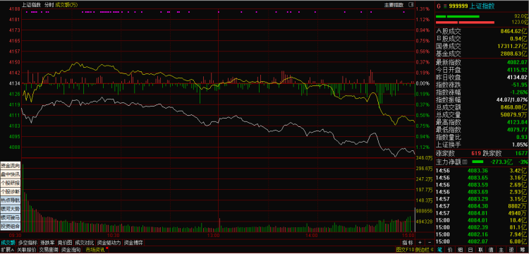 当日,主要股指大幅低开后,一度在题材股尤其是科创板的普涨声中试图上冲。但随着大市值蓝筹跌幅扩大,股指逐级下沉,对冲了普涨行情。随着上证指数跌破4100点,越来越多的个股加入杀跌阵营。最终,主要大盘在强大的抛压下,均以次低点收市。