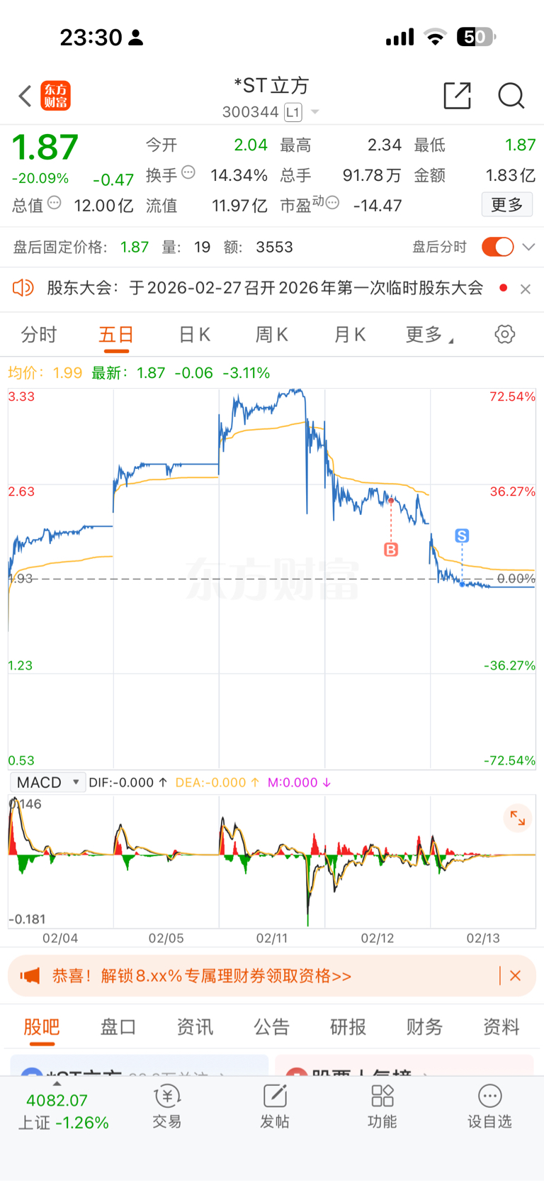 $*ST立方(SZ300344)$