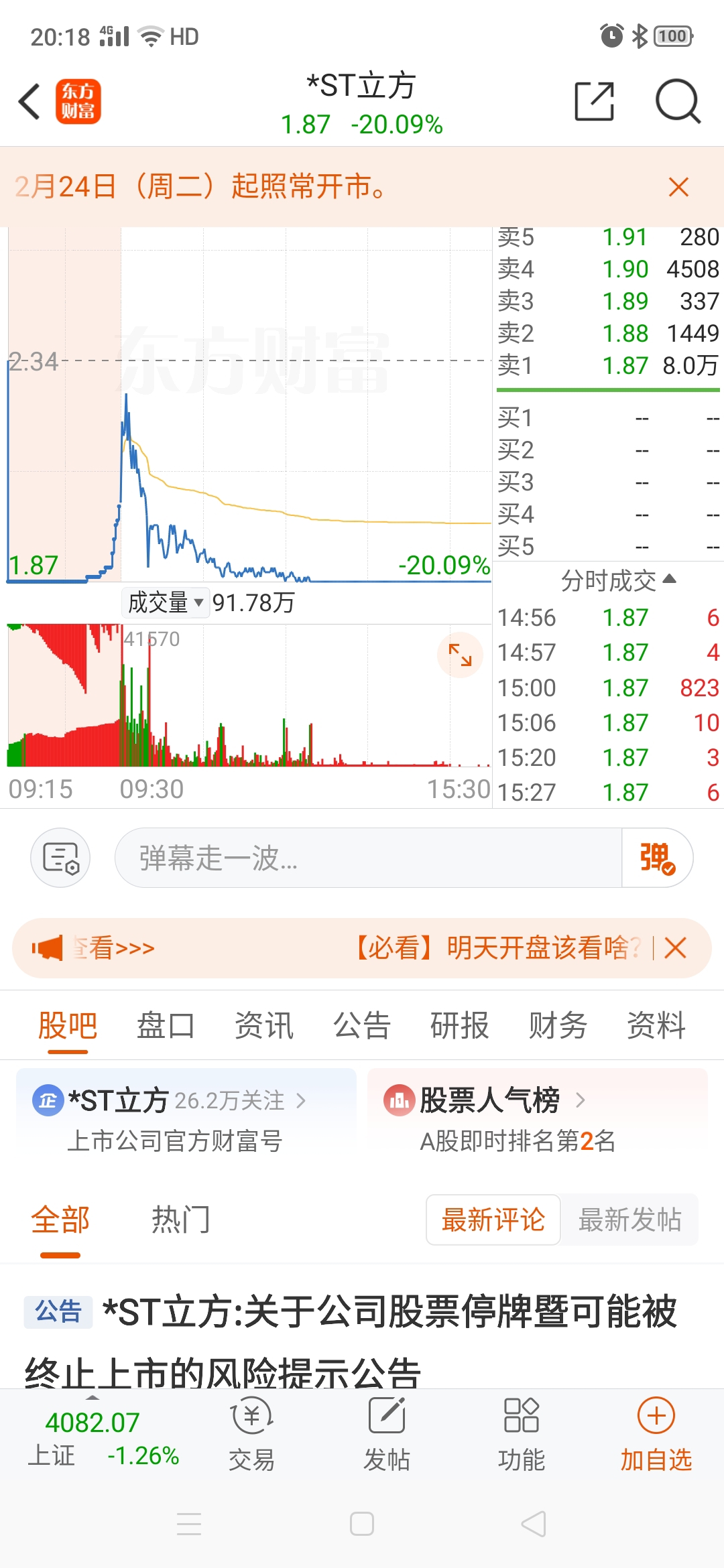 $*ST立方(SZ300344)$ 人气第二名,大家都盯着利空不放是吧