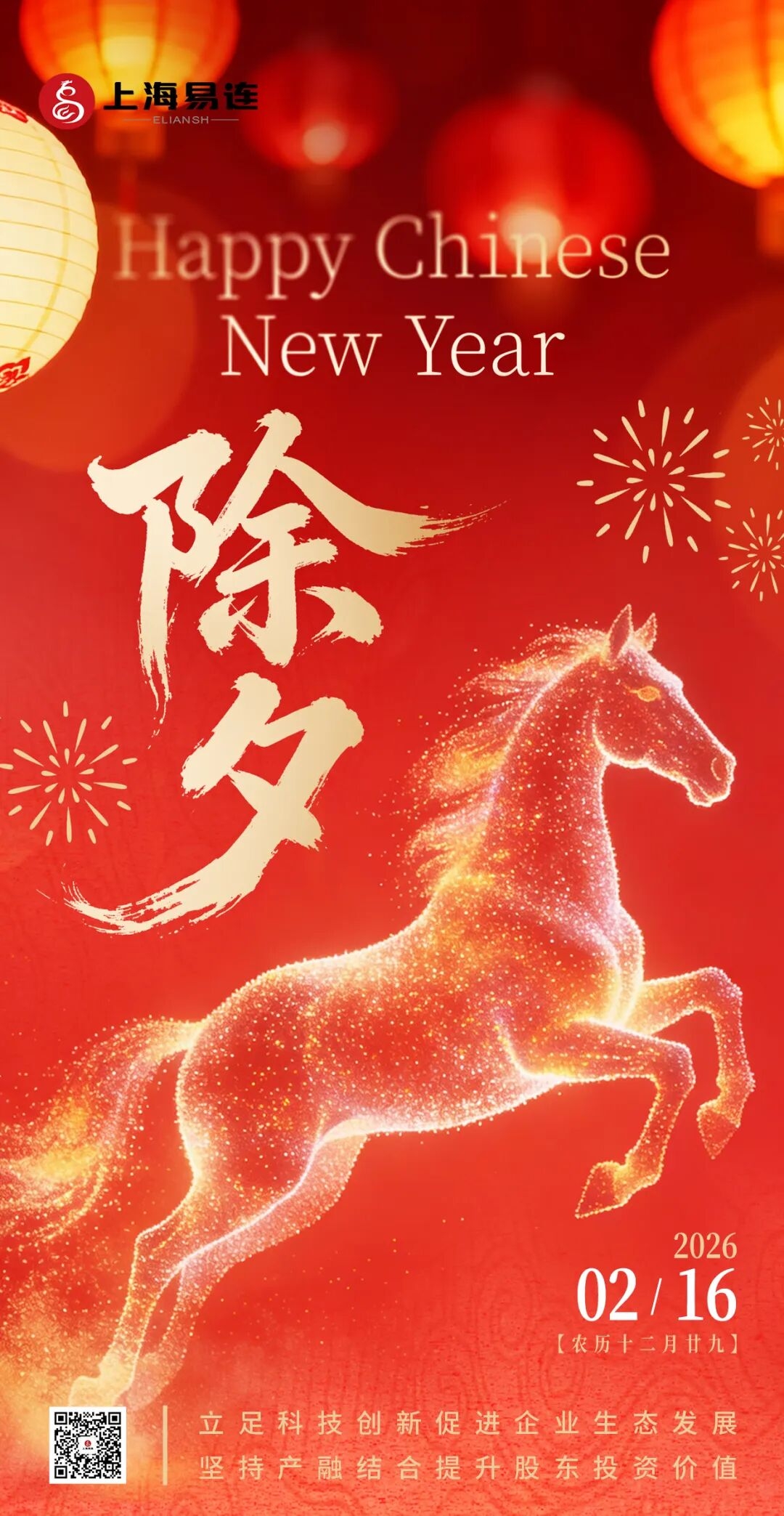 我仅代表上海易连股东祝大家新年快乐()万事如意身体健康()阖家幸福财源广进发大财