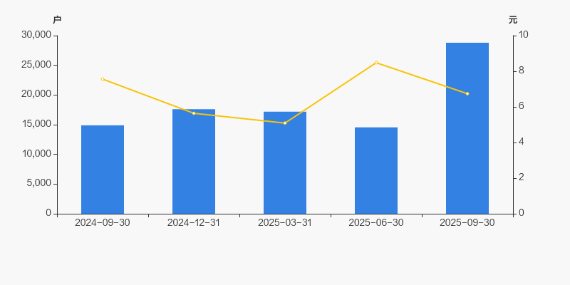2024年9月30日至今,公司股东户数显著大幅增长,区间涨幅达93.42%。2024年9月30日至2025年9月30日区间股价下降10.85%。