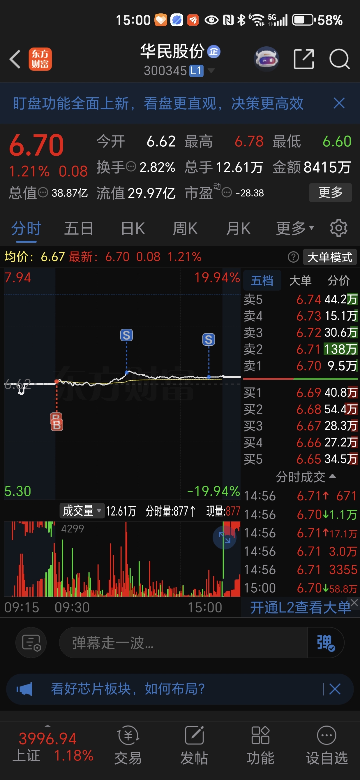 $华民股份(SZ300345)$ 冲高就卖,下来又买!