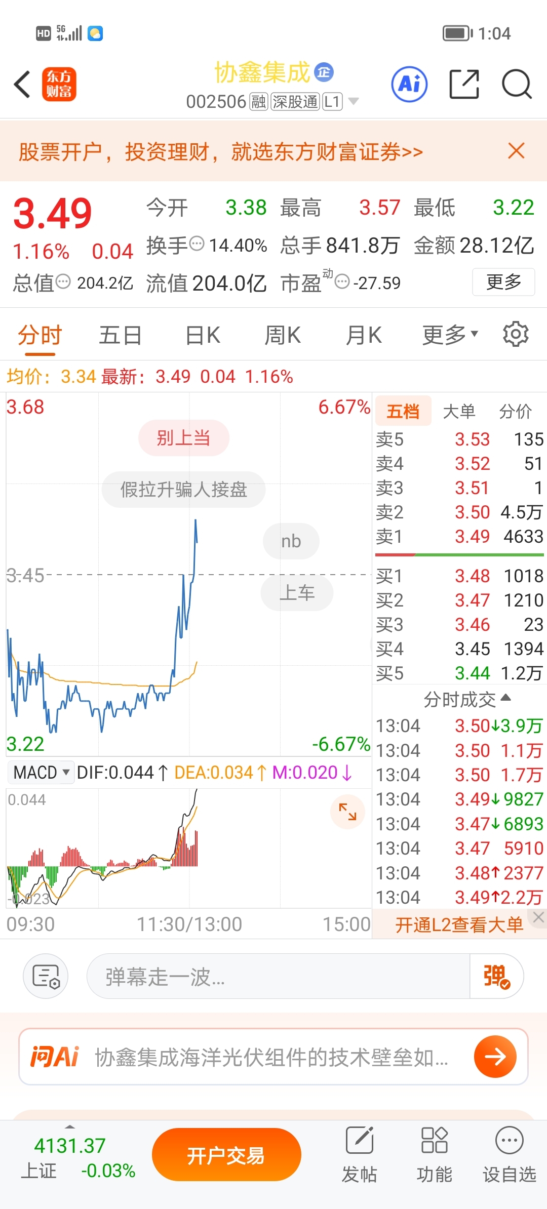 温馨提示: 1.根据《证券法》规定,禁止编造、传播虚假信息或者误导性信息,扰乱证券市场;2.用户在本社区发表的所有资料、言论等仅代表个人观点,与本网站立场无关,不对您构成任何投资建议。用户应基于自己的独立判断,自行决定证券投资并承担相应风险。《东方财富社区管理规定》