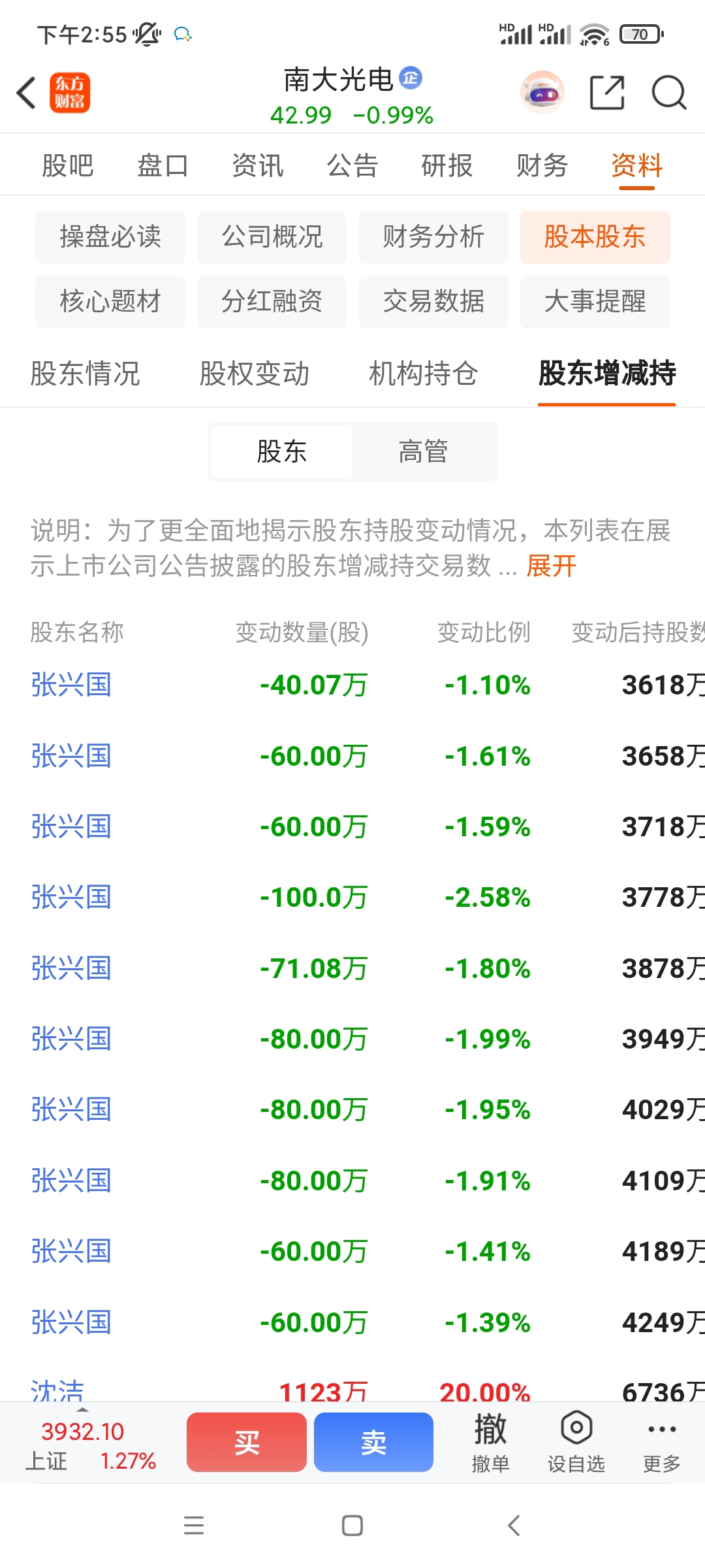 $南大光电(SZ300346)$ 这够天天减持。是要干啥