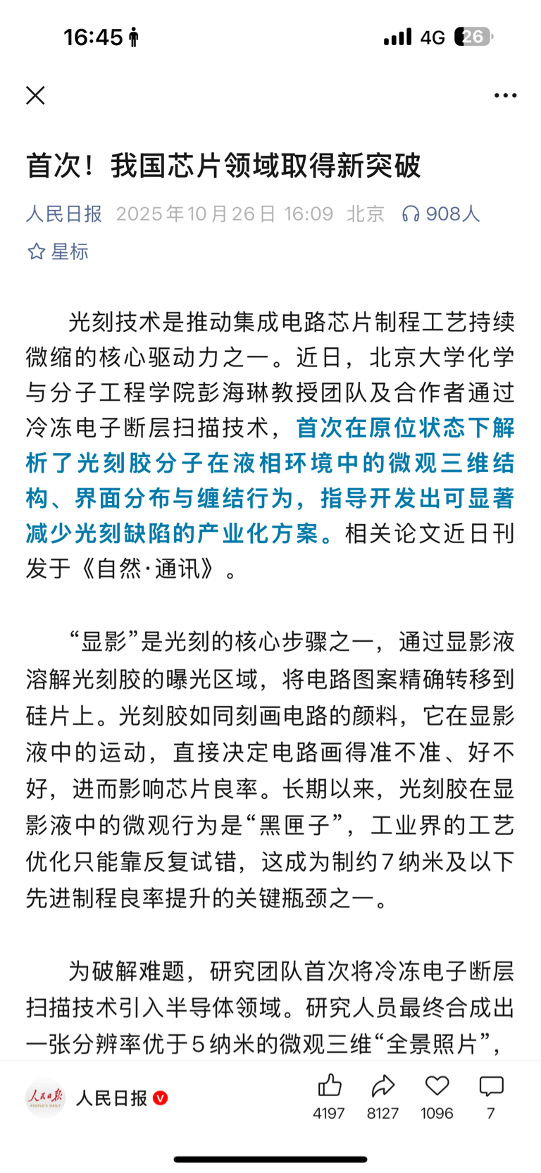 人民网和人民日报也刊登了光刻胶技术的突破热度就不说了