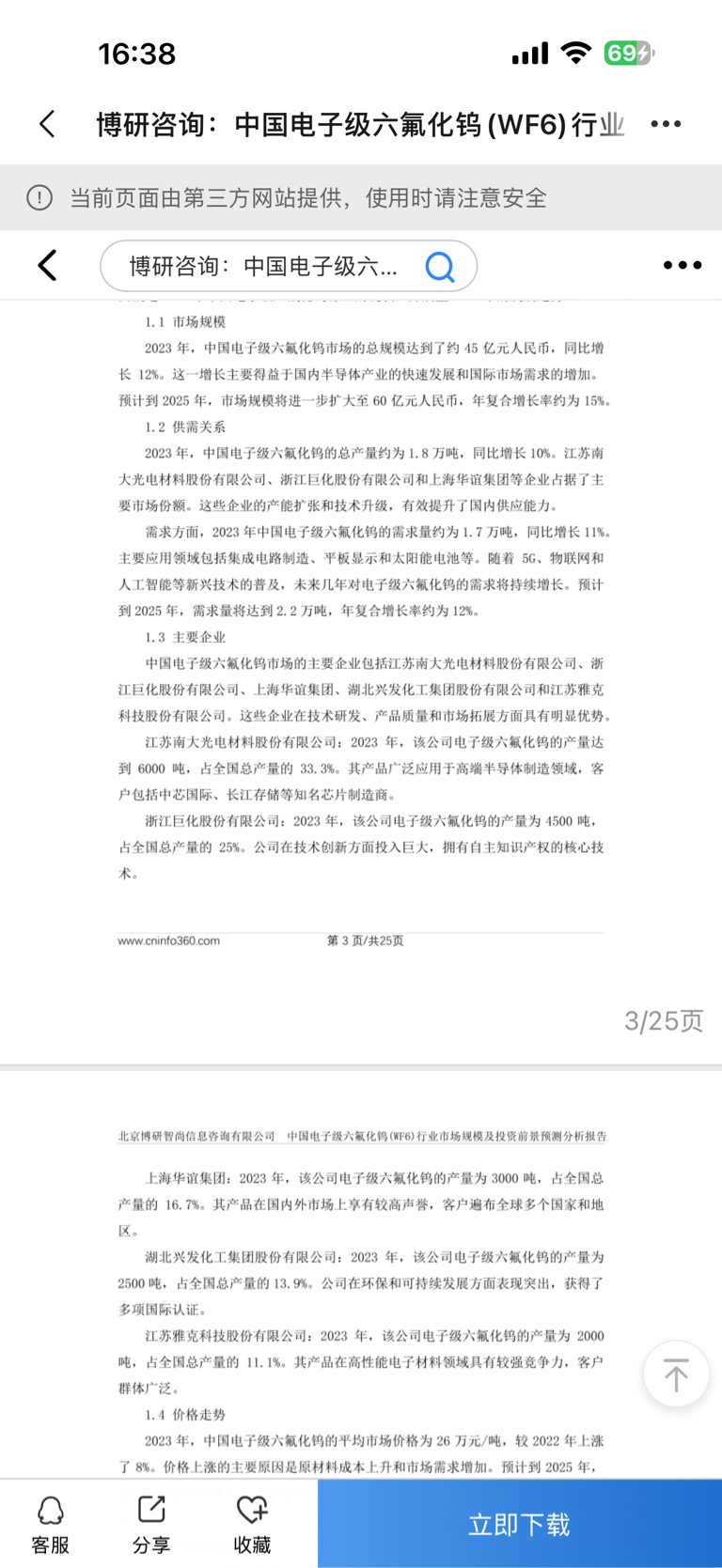 这是2024年的报告,2023年南大光电年生产有6000吨六氟化钨,24-25的