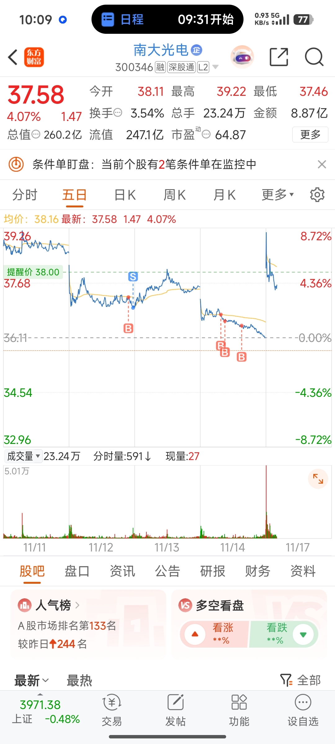 $南大光电(SZ300346)$ 要走么,同学们?昨天加满了,八个点没看到