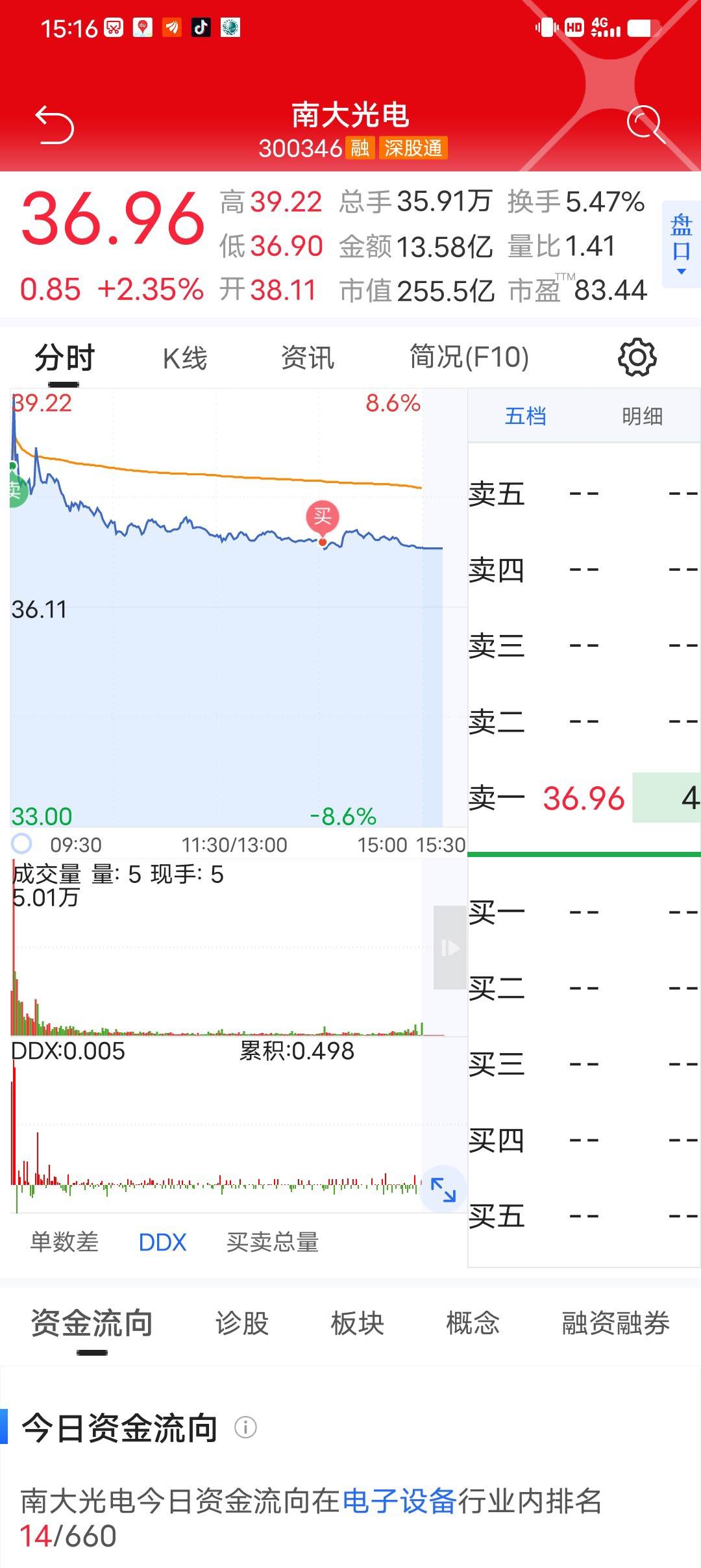 $南大光电(SZ300346)$ 今天卖早一点了,可惜没有卖在39元