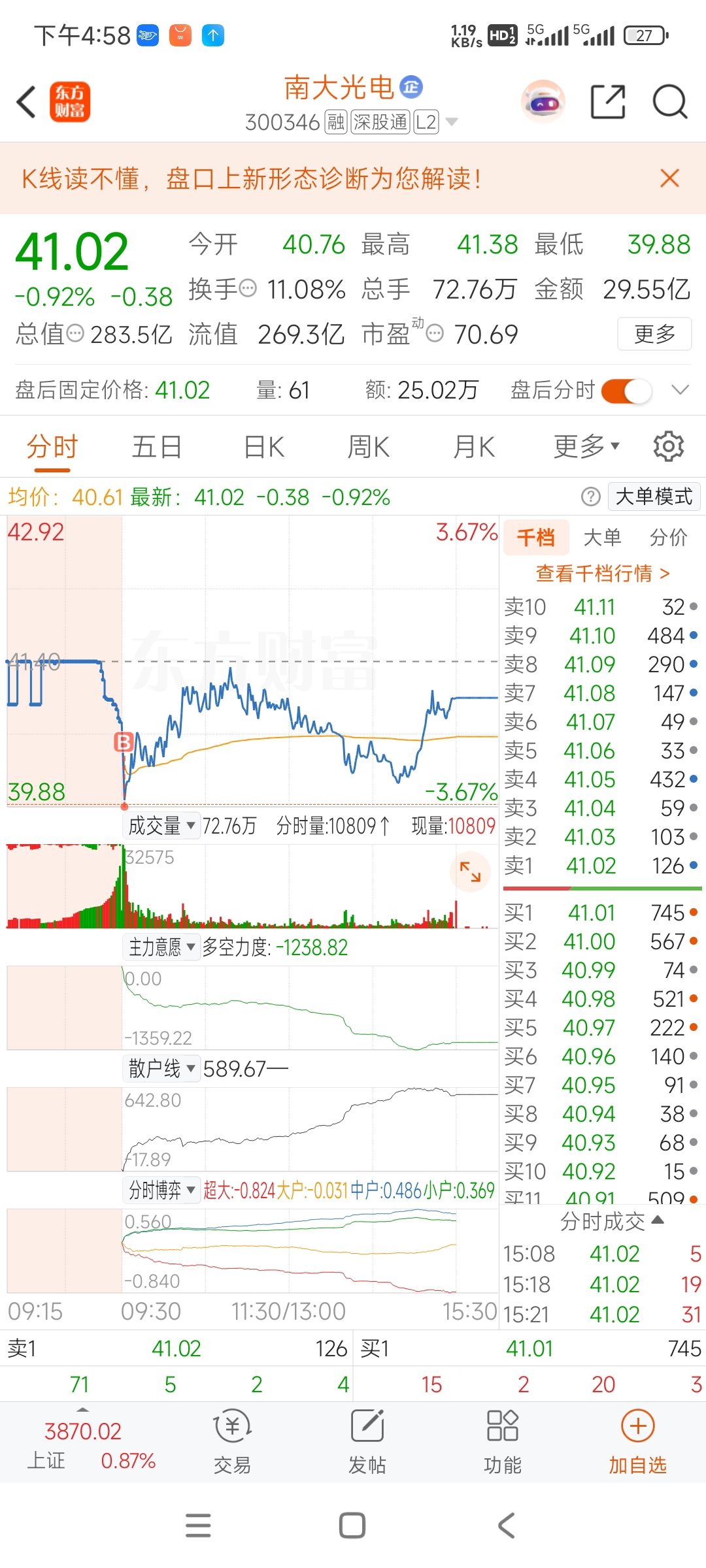 $南大光电(SZ300346)$ 赚不赚钱先不说,我这个价格买入的可以吧,有时候支撑很关键啊