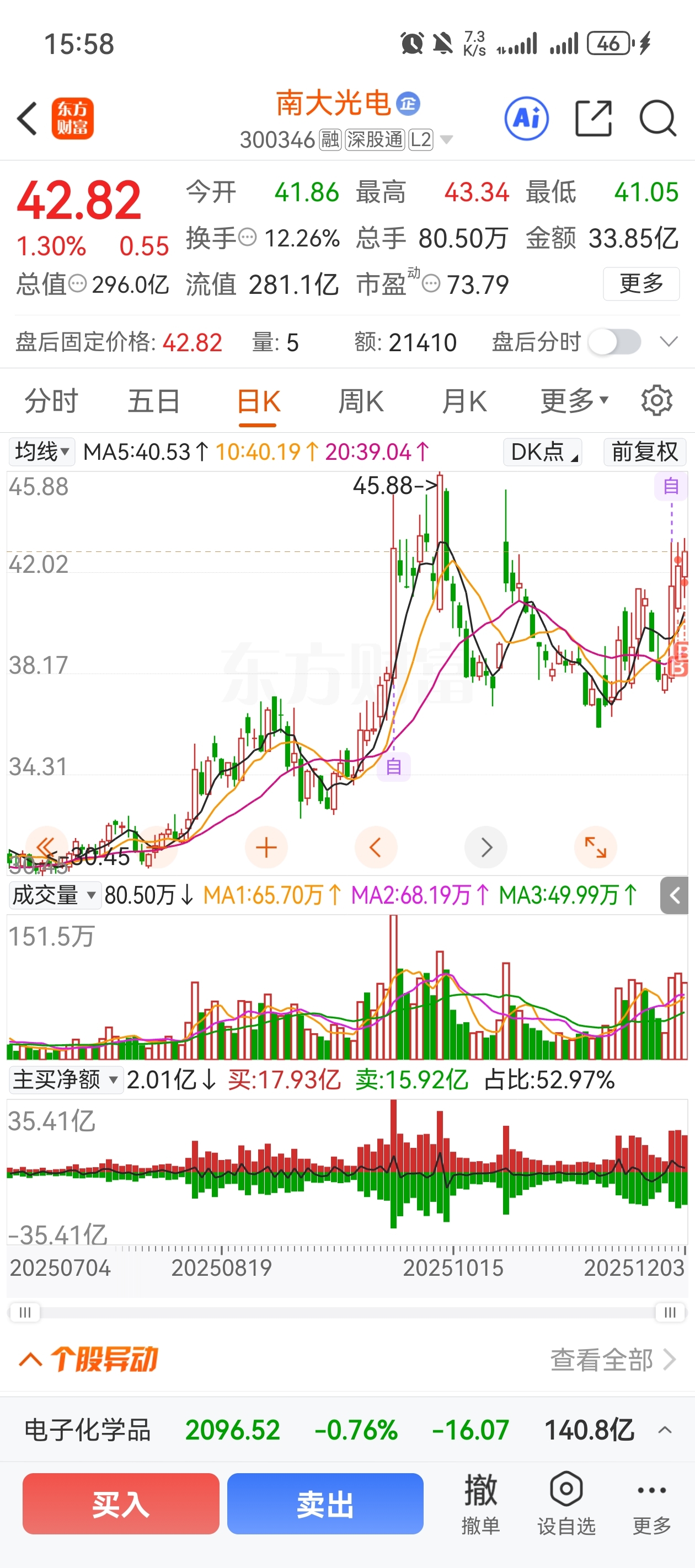 $南大光电(SZ300346)$ 没破前高之前你每跌两个点我就加2层仓
