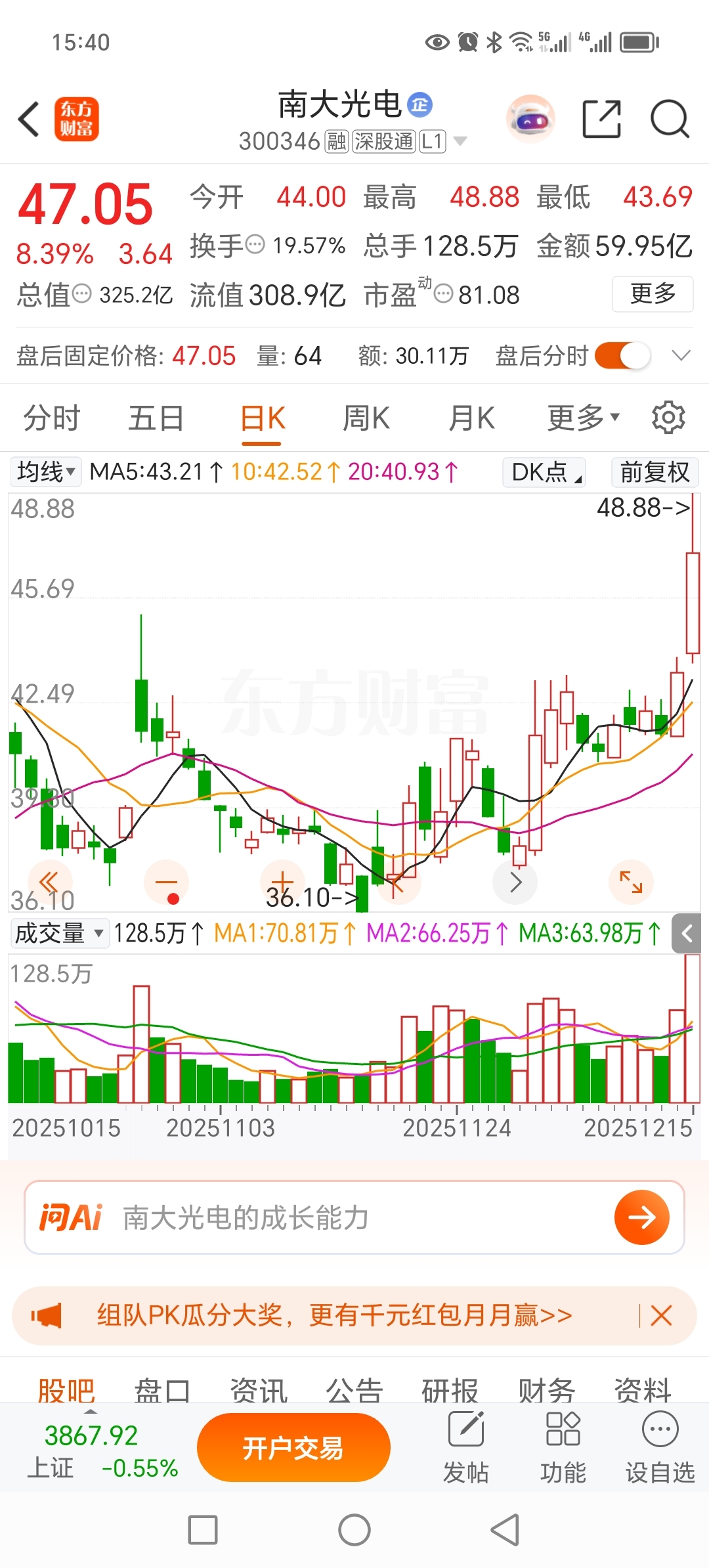 $南大光电(SZ300346)$ 所谓的开宝,是不是就到顶了