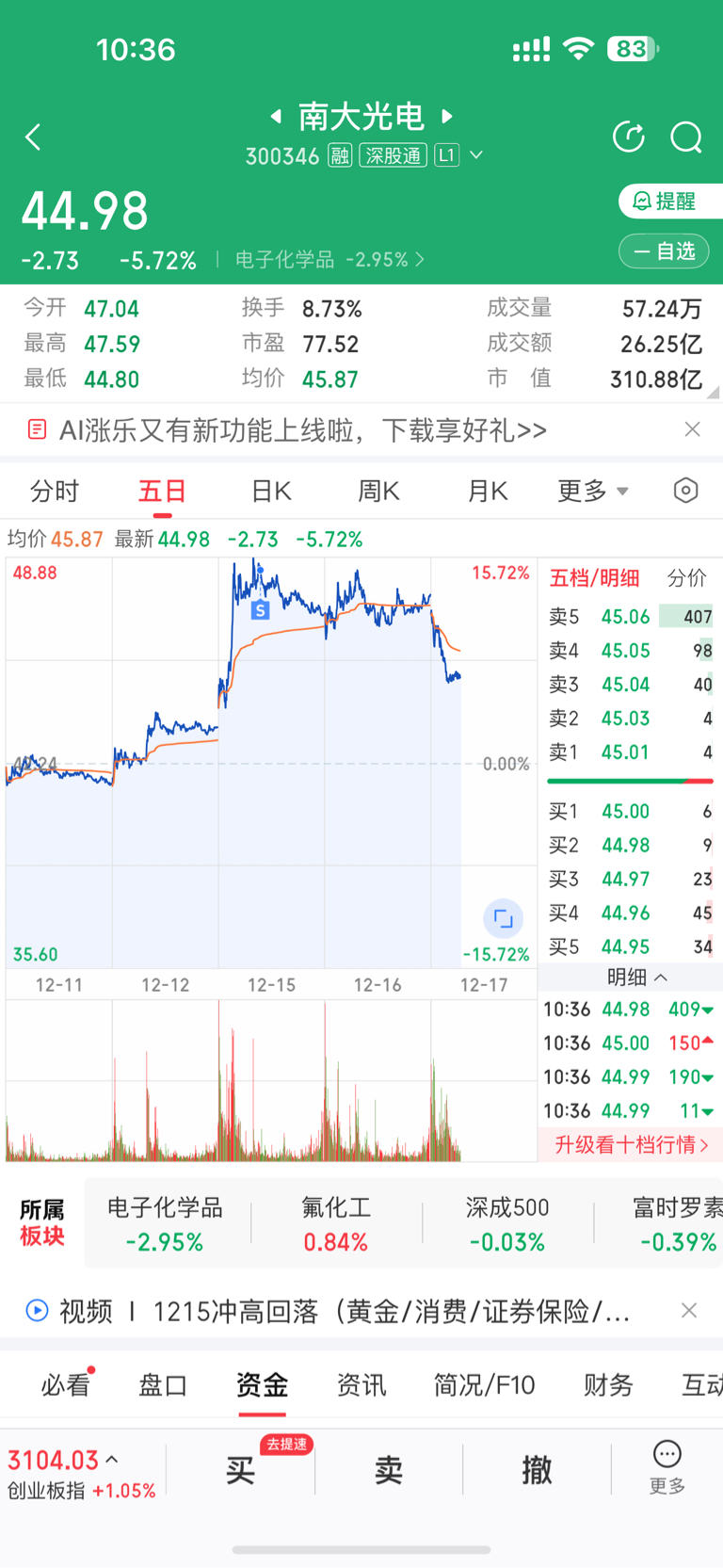 $南大光电(SZ300346)$ 没走的家人们有福了