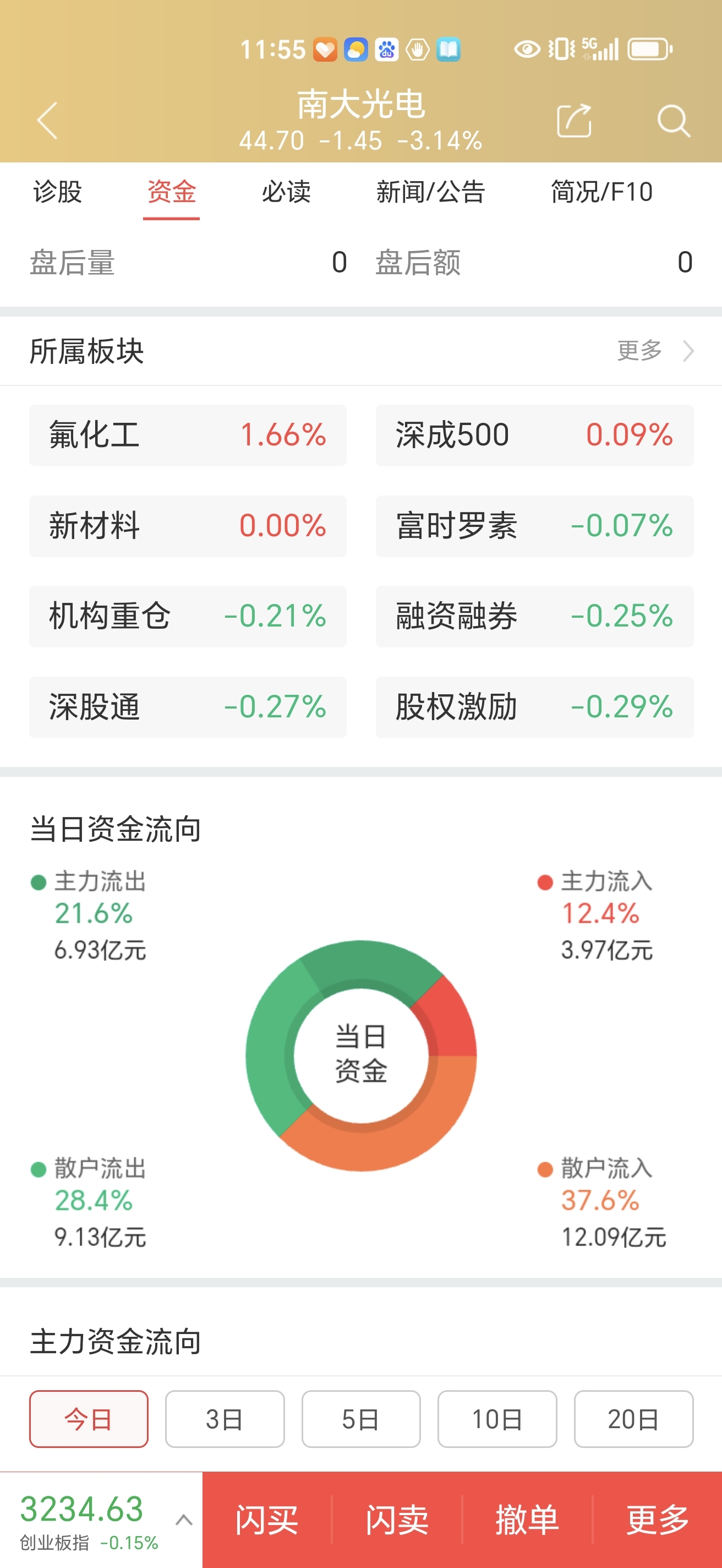 南大光电上午主力跑了3亿,韭菜们还挤破头要进来,都想吃面吗?底裤都亏没了,这个只