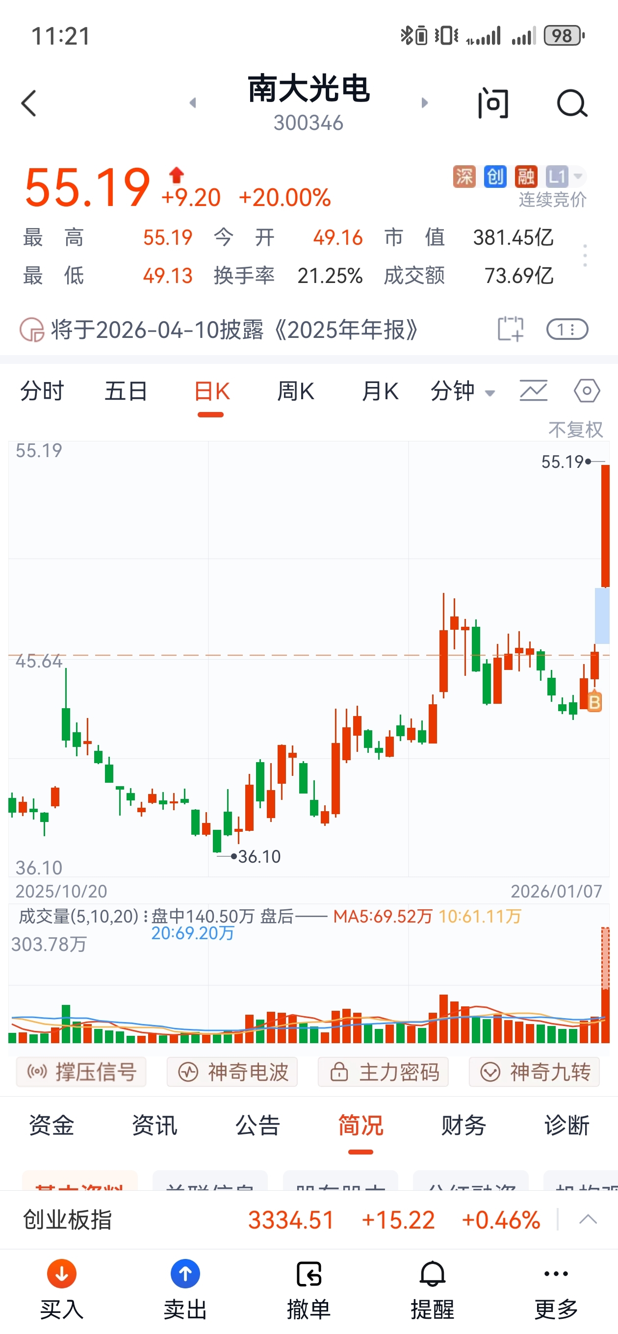 $南大光电(SZ300346)$ 昨天上车,今天就发车