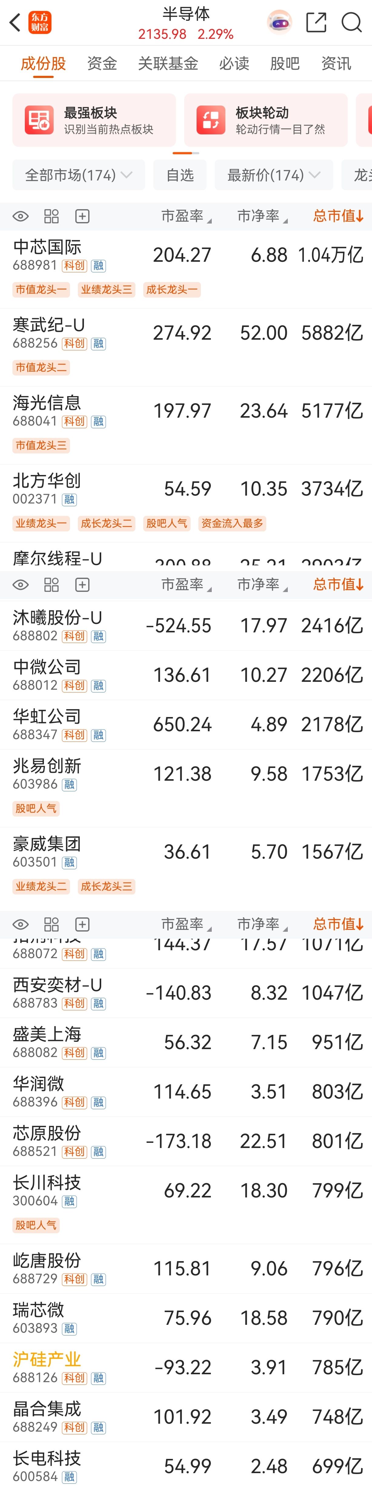 A股半导体晶圆、封测、原厂和设备一堆千亿几千亿市值上市公司,连盛美上海这个上海新阳也做的电镀设备、清洗设备的美盛上海的快千亿市值,半导体化学品材料则太弱了。