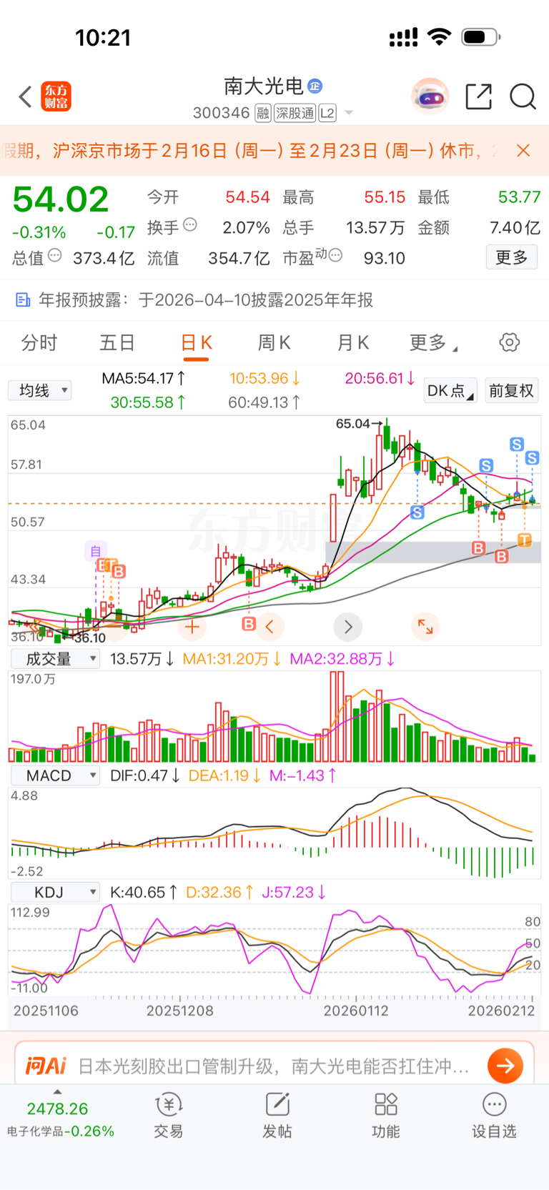 $南大光电(SZ300346)$ 短期废了。节后48-49之间建仓