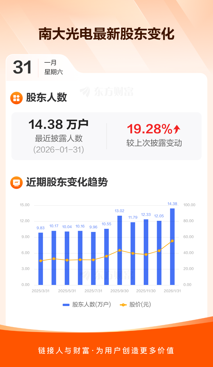 南大光电:截至1月31日最新股东户数14.38万户,较上期增加19.28%