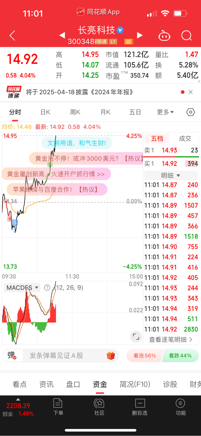 $长亮科技(SZ300348)$ 你真牛逼,拿了你5天,就差我这300手