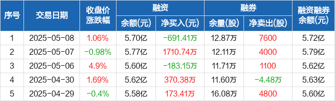长亮科技:融资净偿还691.41万元,融资余额5.7亿元(05-08)