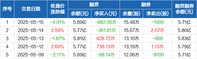 长亮科技:融资净偿还882.05万元,融资余额5.69亿元(05-15)