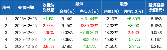 长亮科技:融资净偿还131.44万元,融资余额6.14亿元(12-26)