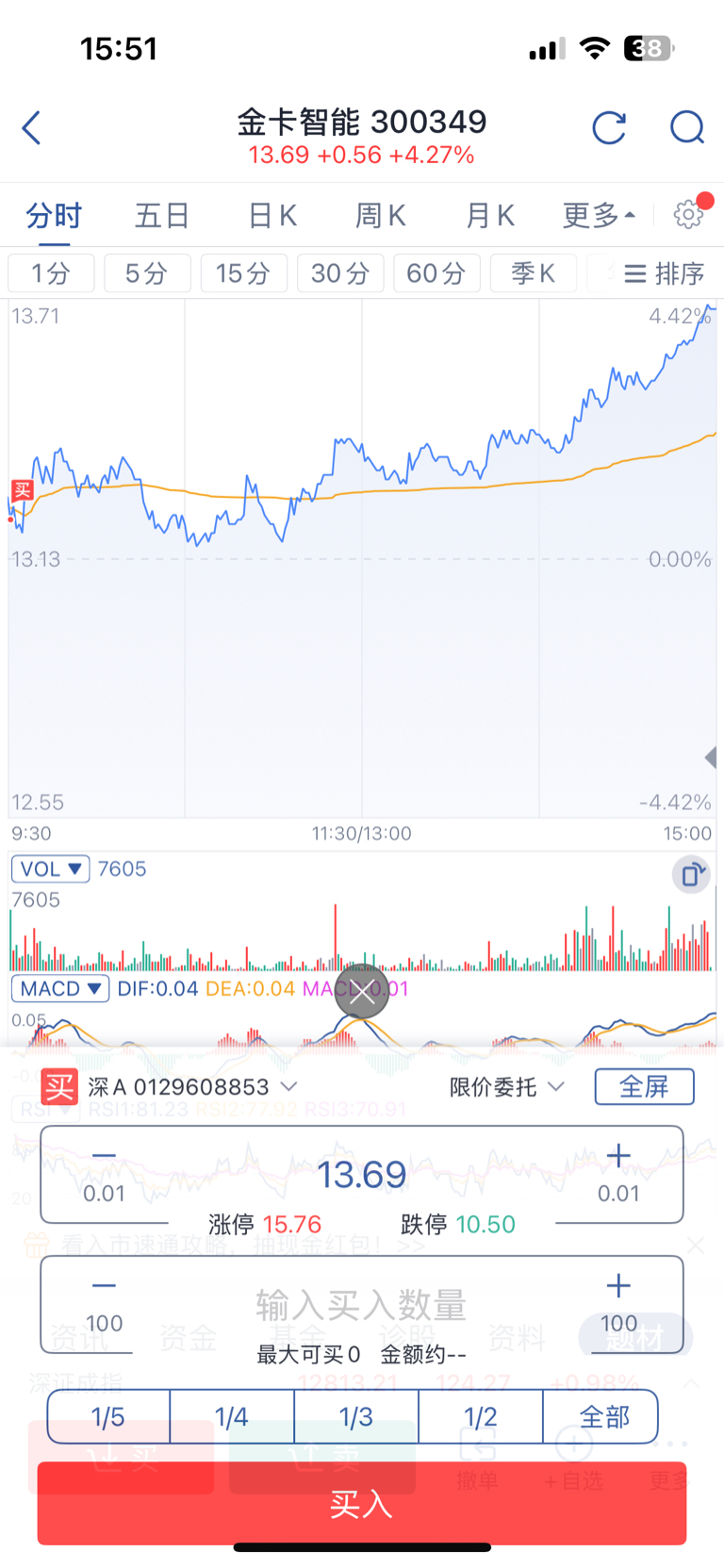 $金卡智能(SZ300349)$ 开盘买了,买少了
