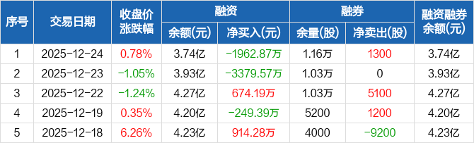 金卡智能:融资净偿还1962.87万元,融资余额3.74亿元(12-24)