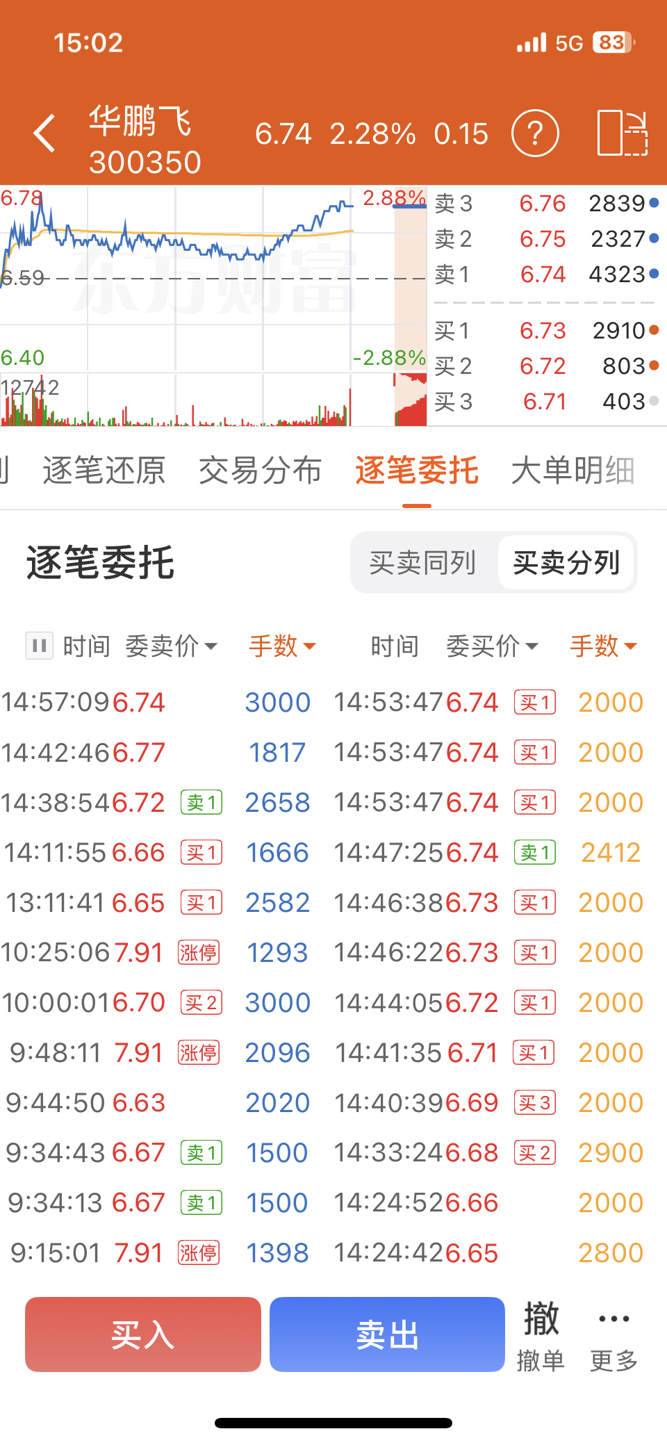 $华鹏飞(SZ300350)$ 全是2000手的量化买单推着走
