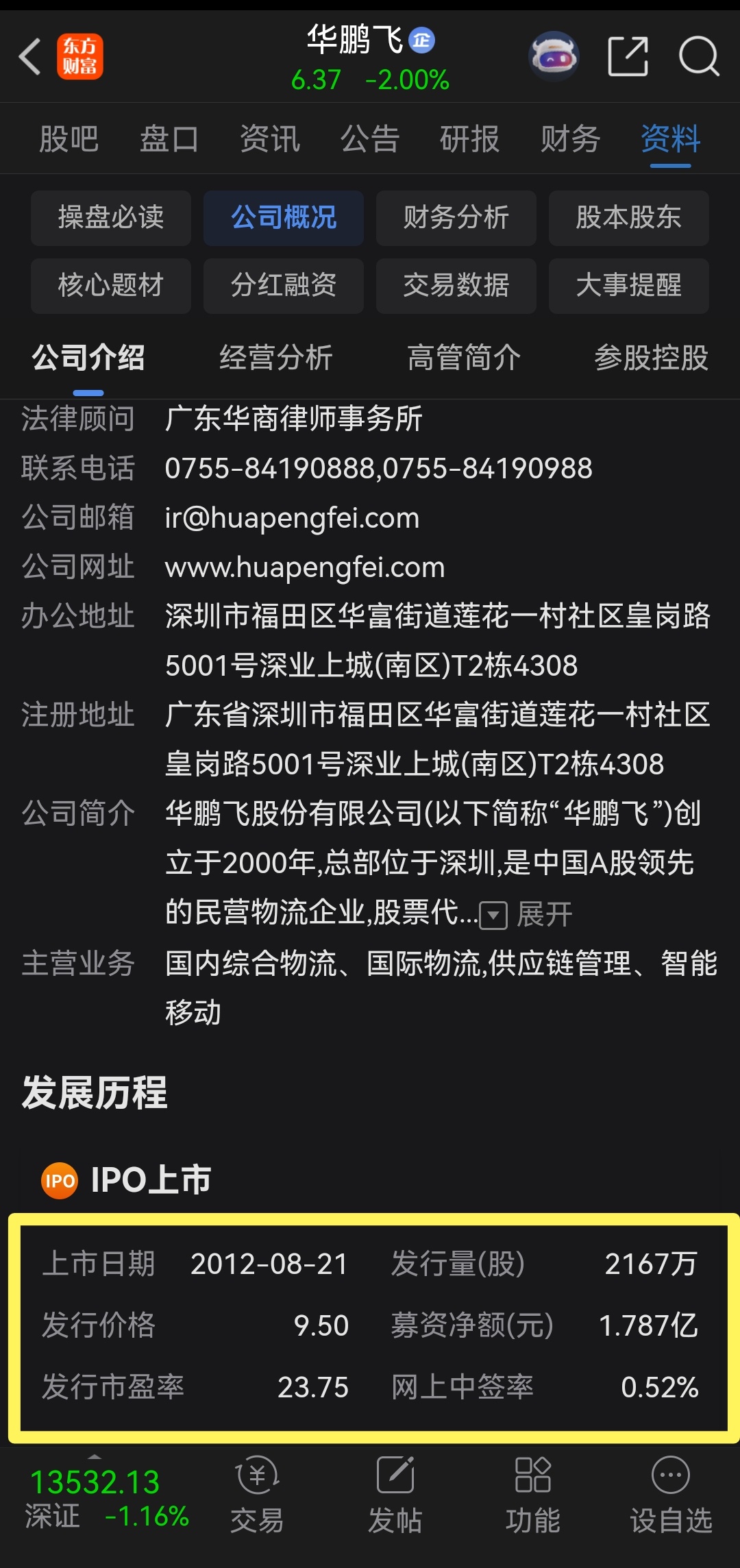 20120821上市,初始新股9.50元,发行2167万股(袖珍小盘股),经过13年多的股本扩张分红送股,今天的复满权价为23.27元(后复权),191.15-23.27=167.88/23.27=7.214439=721.44%(高价位追涨者,需要涨7倍多才能够解套)