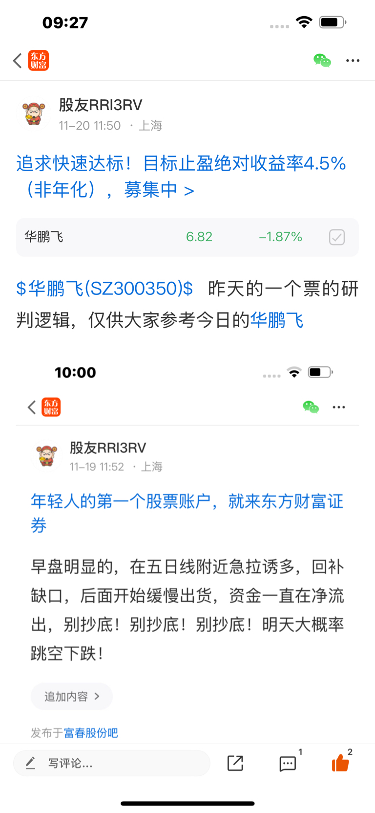 温馨提示: 1.根据《证券法》规定,禁止编造、传播虚假信息或者误导性信息,扰乱证券市场;2.用户在本社区发表的所有资料、言论等仅代表个人观点,与本网站立场无关,不对您构成任何投资建议。用户应基于自己的独立判断,自行决定证券投资并承担相应风险。《东方财富社区管理规定》