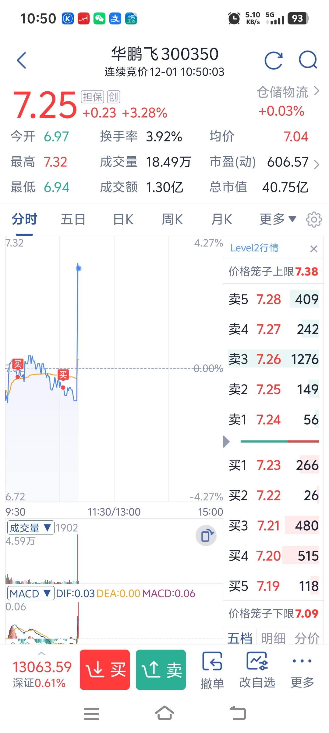 $华鹏飞(SZ300350)$ #炒股日记# 记录一下自己激动的一下下,看好它的趋势往上走