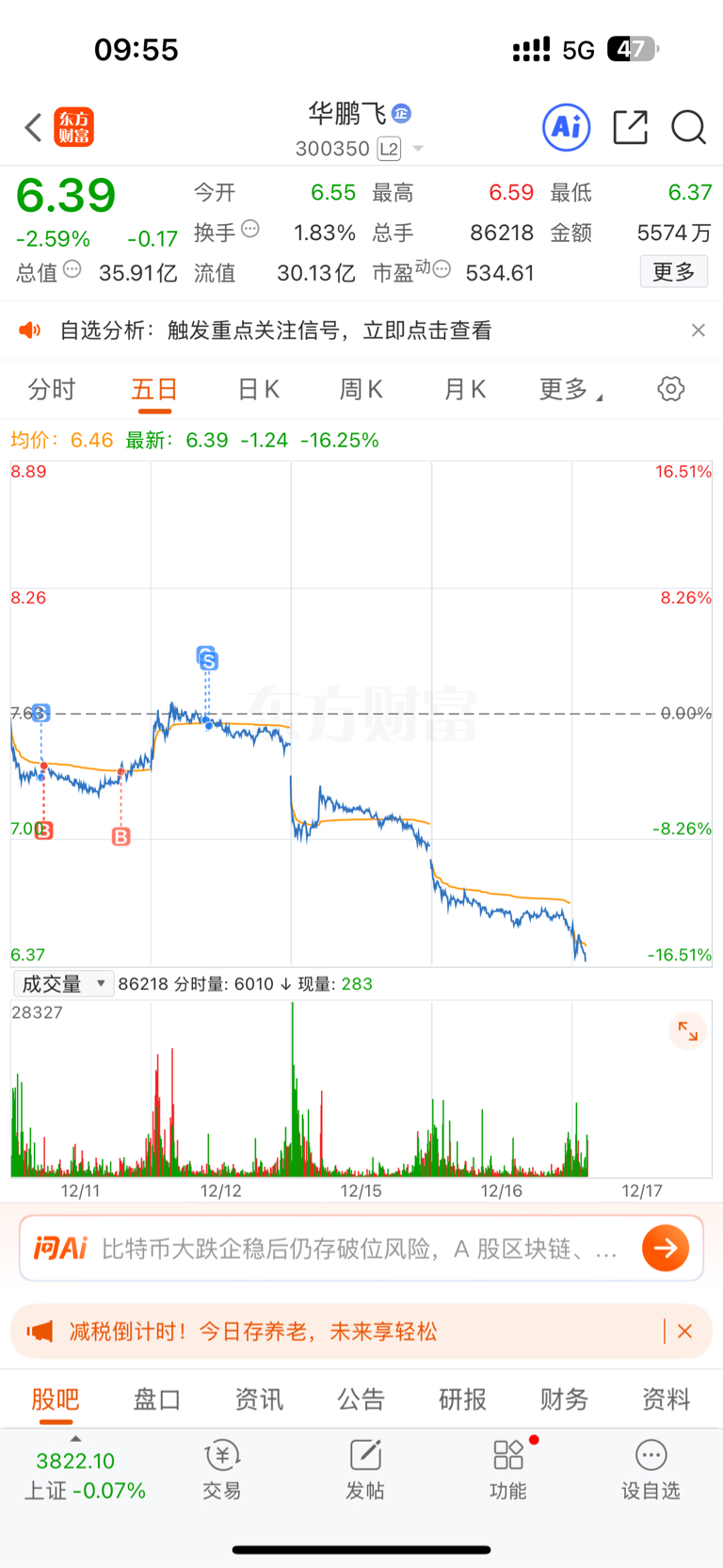 $华鹏飞(SZ300350)$ 辛亏吃了两个多点跑路了,不然套死我了