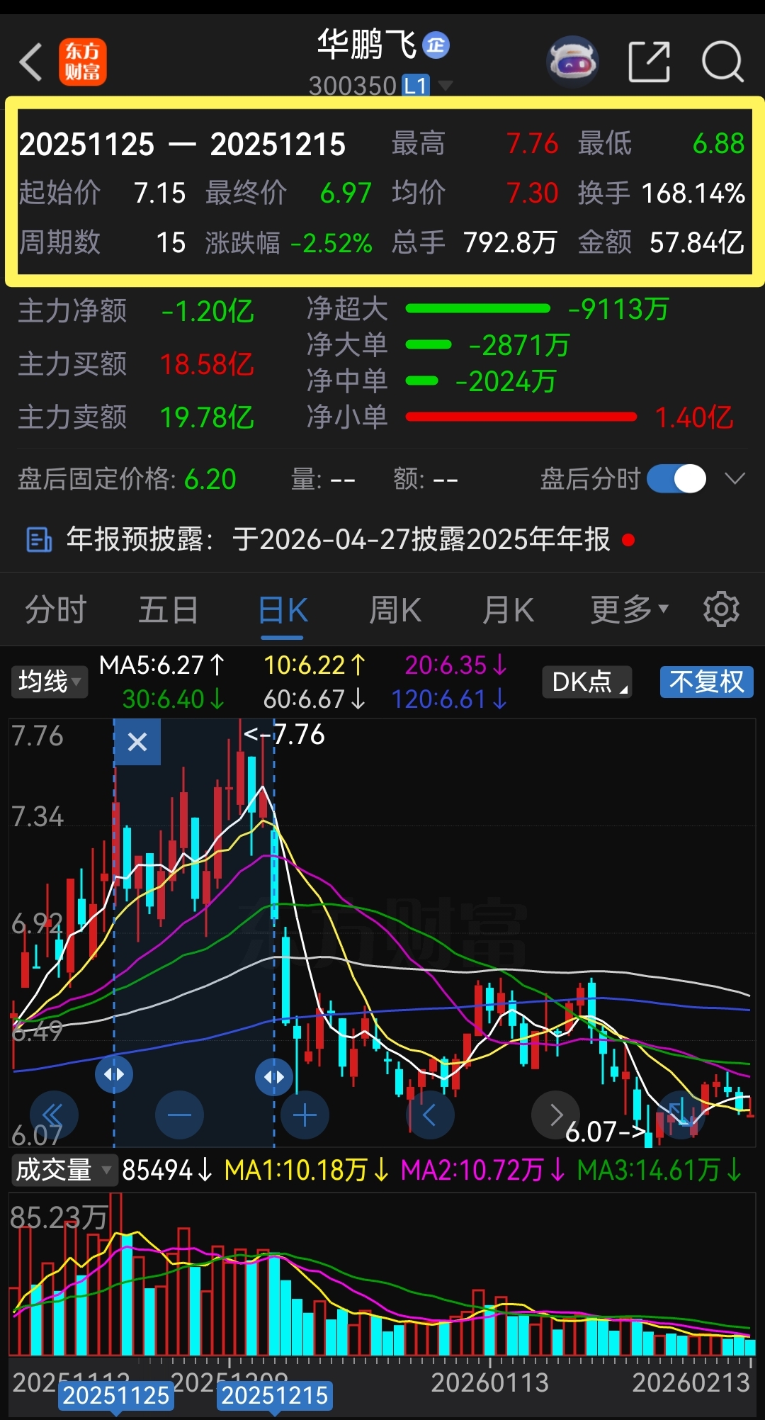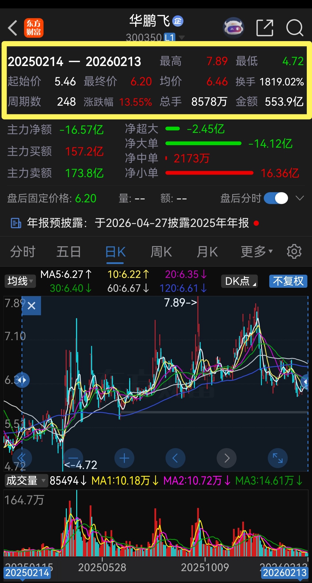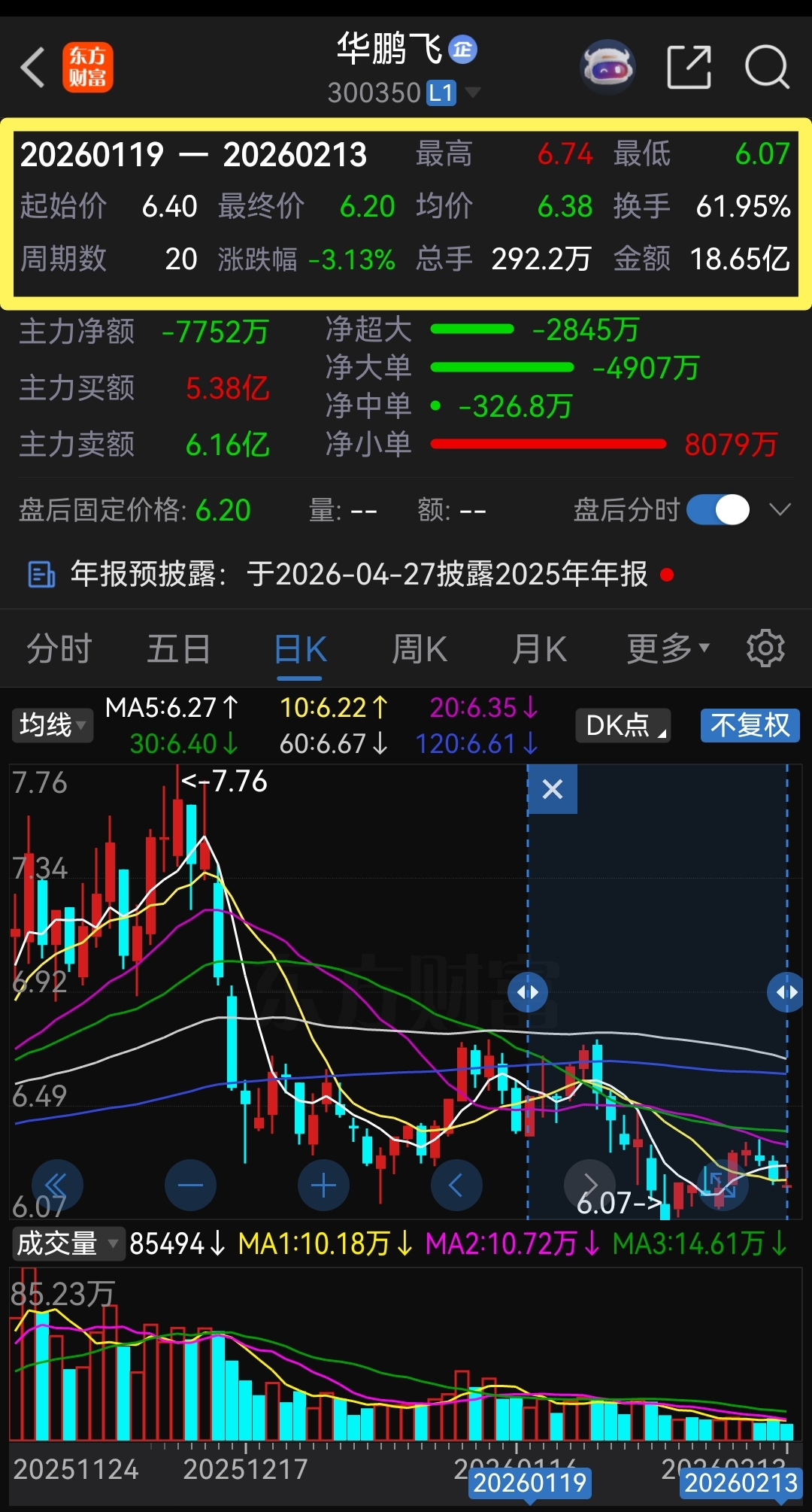 收盘价低于全天成交均价6.23元,逢低买入布局待涨为最佳策略!提供60个交易日内