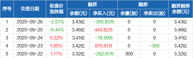永贵电器:融资净偿还305.83万元,融资余额3.43亿元(09-26)