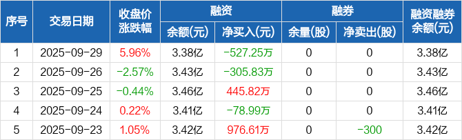 永贵电器:融资净偿还527.25万元,融资余额3.38亿元(09-29)
