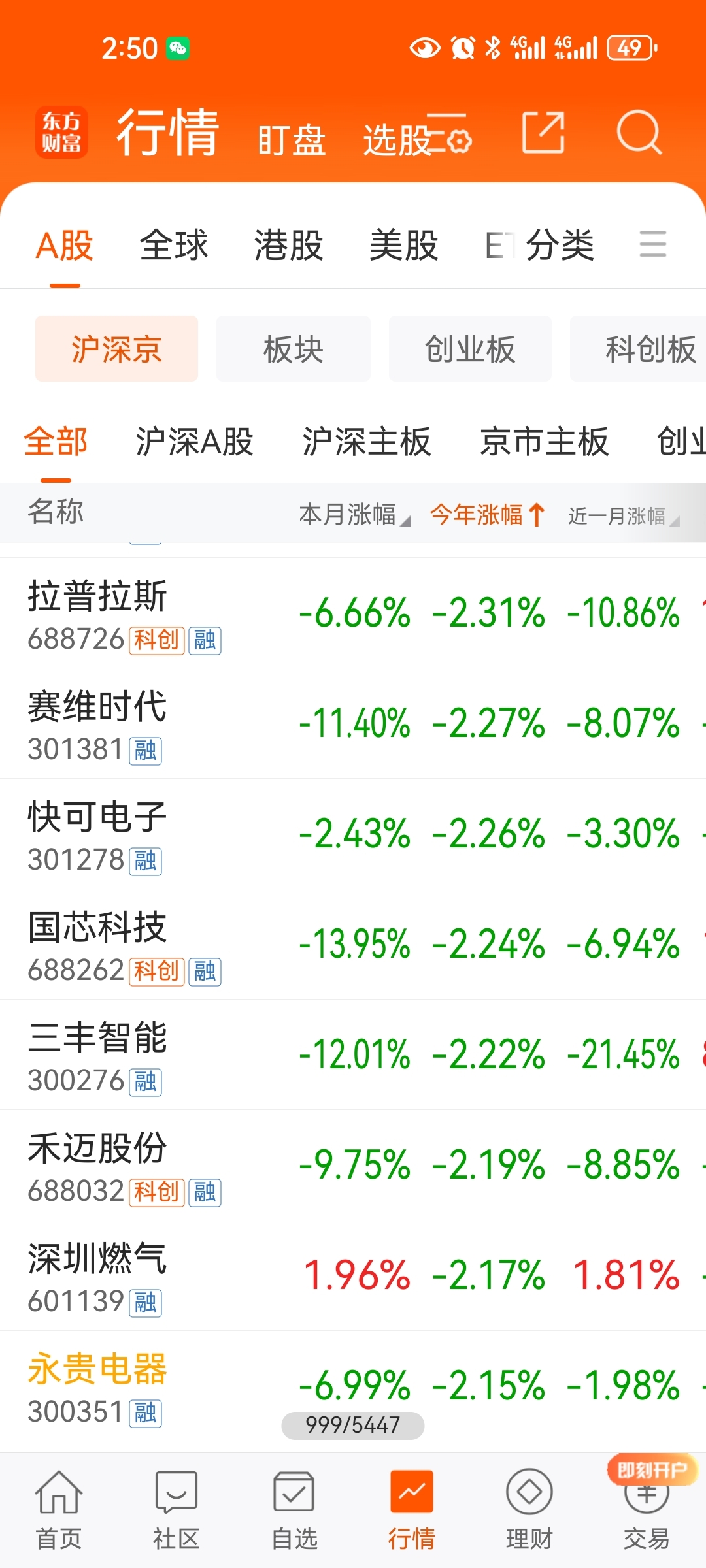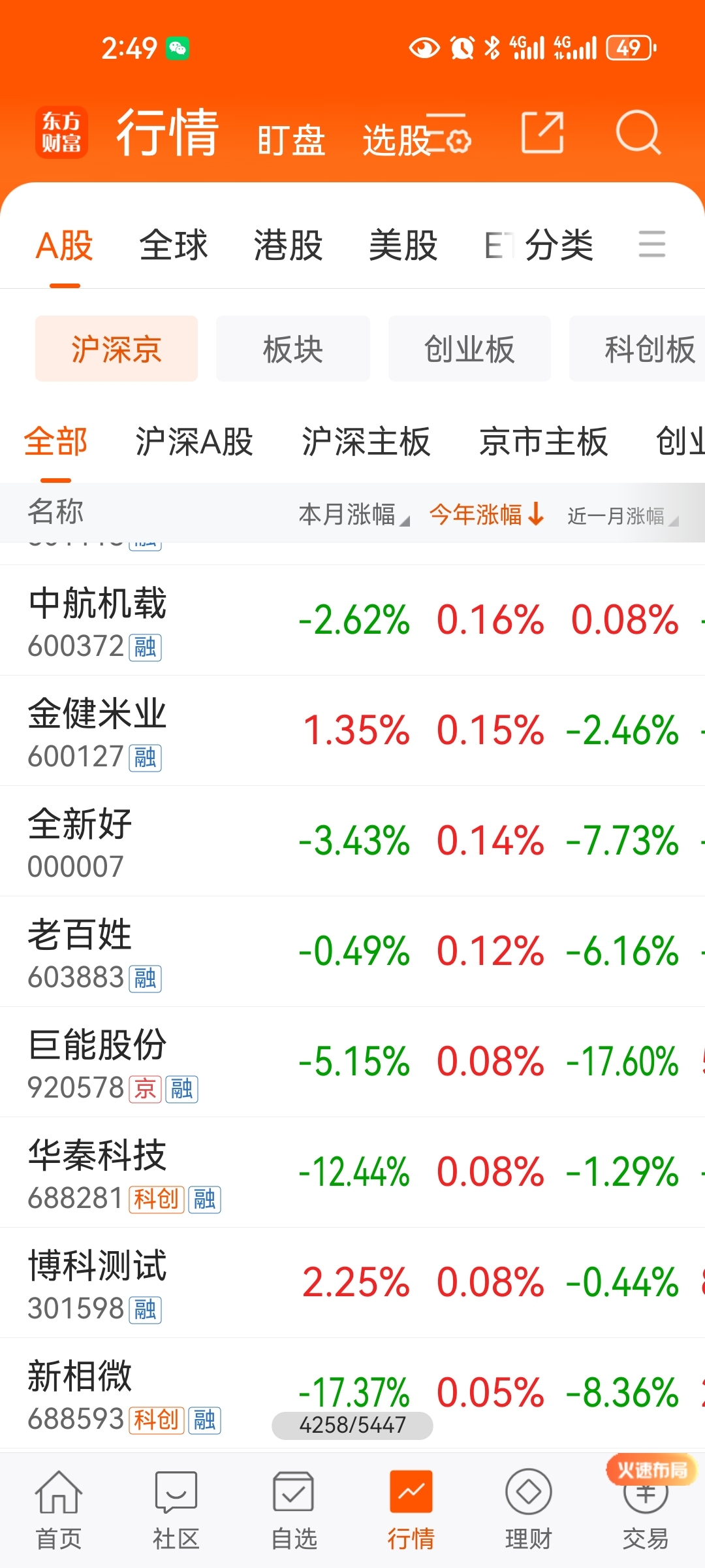 这个勒色跌幅榜排前999名,涨幅榜上今年4258支是红的。这种勒色成了你们眼中的