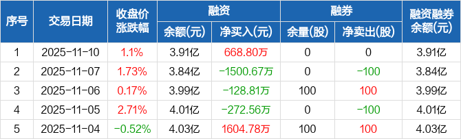 永贵电器:融资净买入668.8万元,融资余额3.91亿元(11-10)