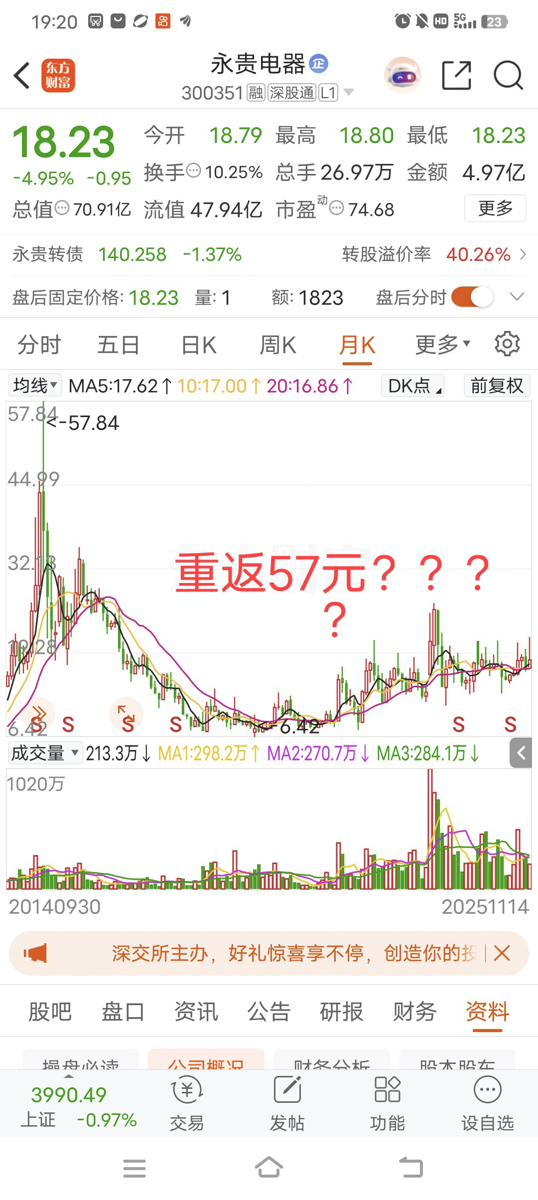 $永贵电器(SZ300351)$ 星期一反包,继续创最近一年新高,解放所有散户,复制上纬新材20倍行情。。和智元机器人合作的公司,股价翻倍可能性大,合富停牌,永贵起飞,富贵不能移,坚定持有,拿到2028年,赚个100万下车,越跌越买,,。永贵是个庄股,庄家手里货非常多,看空地都是想低吸的,唱多的是被套的,而且格局大得很,,,,